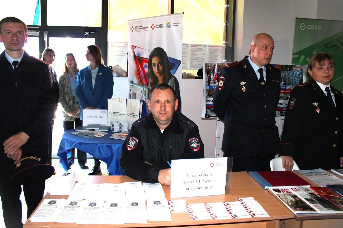На стенде транспортной полиции посетители могли узнать о доступных вакансиях, получить консультации от сотрудников и ознакомиться с условиями службы. Особое внимание уделялось привлечению молодёжи к поступлению в высшие учебные заведения МВД России. Желающим связать свою жизнь с правоохранительной деятельностью предлагались визитки и памятки с контактной информацией для получения более подробной информации в дальнейшем.