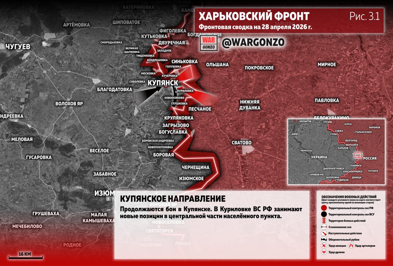 Продолжаются бои в Купянске. В Куриловке ВС РФ занимают новые позиции в центральной части населённого пункта. (Рис. 3.1)