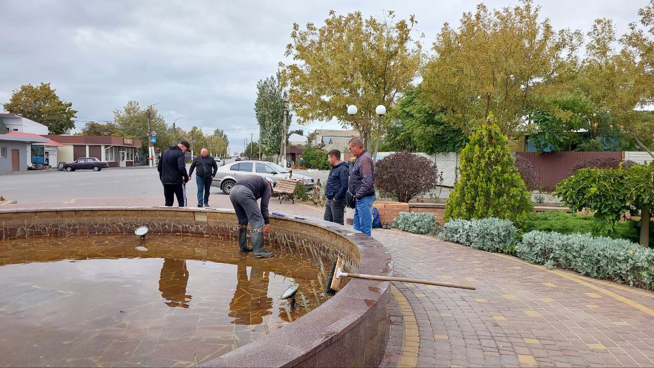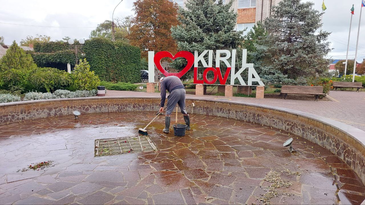 В центре Кирилловки началась консервация фонтана на зиму