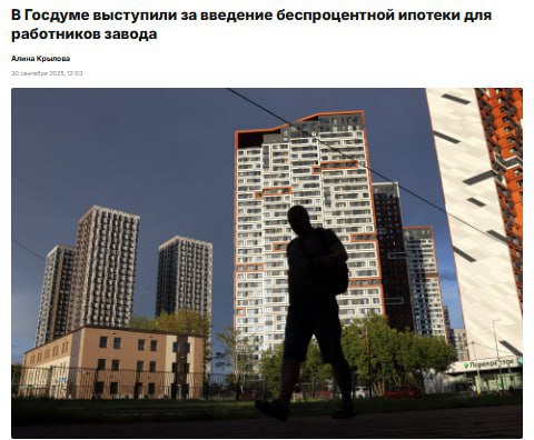 Чтобы решить проблему дефицита кадров на производствах, депутаты хотят дать заводчанам доступ к жилью без переплат — с кредитами под 0% годовых и лимитом до 9–18 млн рублей в зависимости от региона.