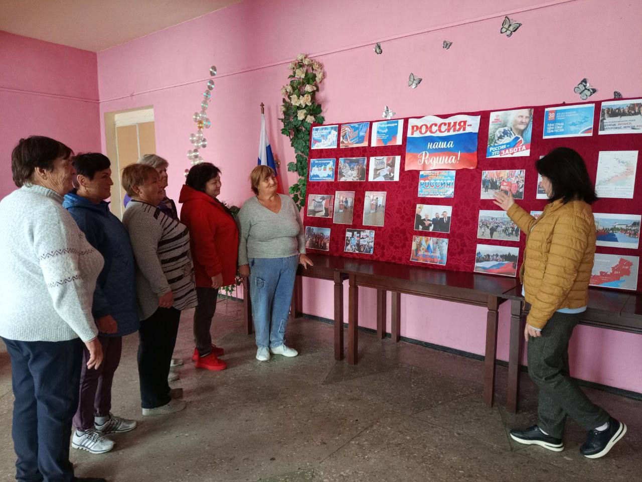 Ко Дню воссоединения ДНР, ЛНР, Запорожской и Херсонской областей с Российской Федерацией в Новоднепровском сельском Доме культуры Каменско-Днепровского МО состоялась фотовыставка "Вместе мы - Россия".