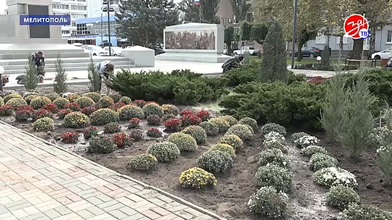Главную площадь Мелитополя украсили хризантемы.