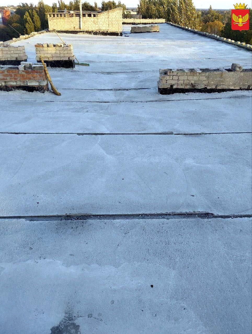- Отлита стяжка на крыше многоэтажки по улице Морская, 54 и 56. Следующий этап - покрытие подкладочным слоем рубероида.