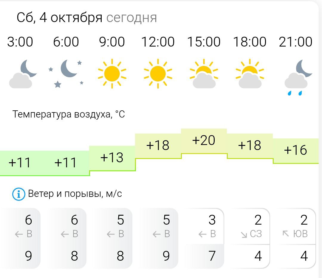 Температура воздуха ночью +11°C, днём +20°C, ветер восточный, северо- западный, юго-восточный, 2-6 м/с.