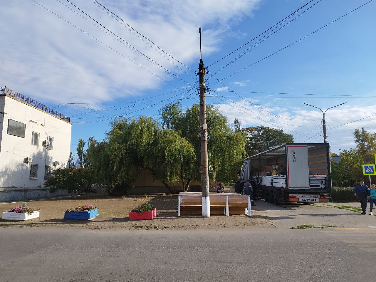 Выставка "Площадь театральная" предоставлена в Акимовский муниципальный округ в рамках проекта Министерства культуры Российской Федерации и Музея обороны Севастополя. Конструкция представляет собой выставку, посвящённую истории русского театра, с местами для отдыха взрослых и детей. Предполагается, что фото и иллюстрации будут меняться по различным тематикам.