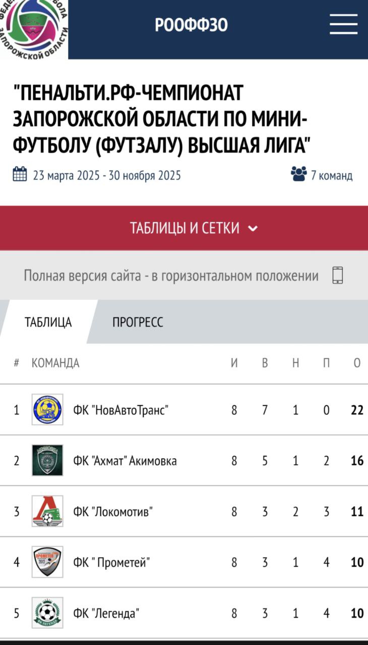 Сегодня 5 октября 2025 г. в 11:00 в рамках Чемпионата Запорожской области по мини-футболу (футзалу) Высшей Лиги ФК "АХМАТ" пгт. Акимовка Запорожской области провели игру с ФК "Промтей" в г. Мелитополь.