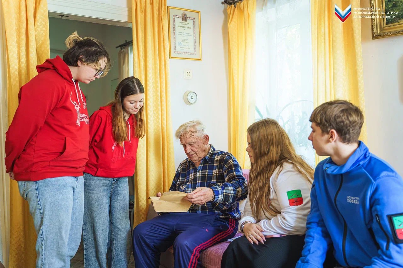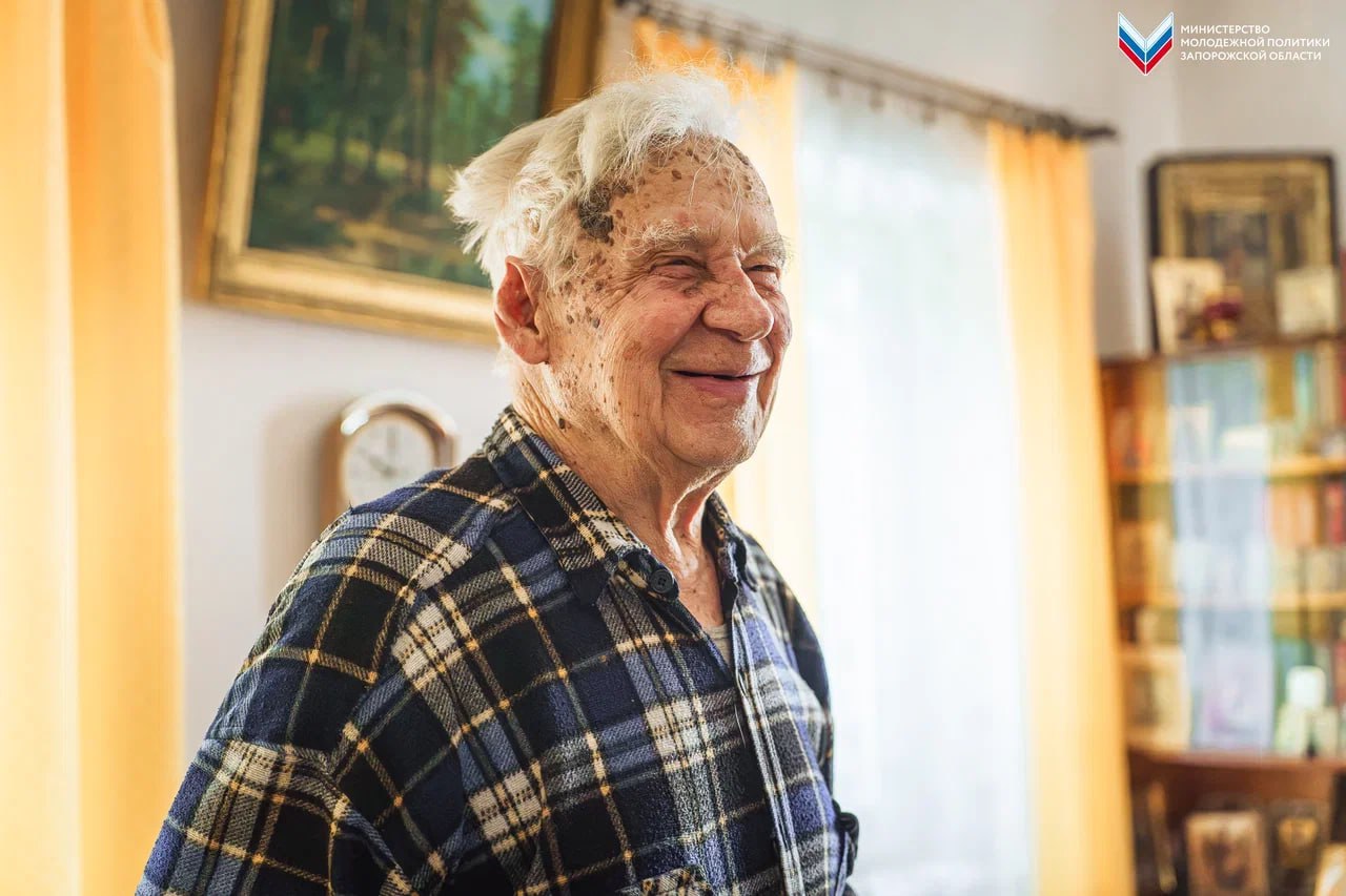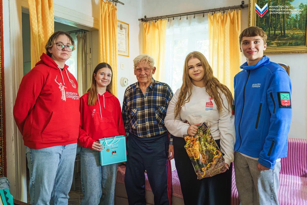 Добровольцы Запорожского регионального отделения «Волонтёры Победы» и активисты молодёжного движения «Волонтерская Рота Боевого Братства» навестили ветерана Великой Отечественной войны Николая Ивановича Волика и поздравили с Днём учителя.