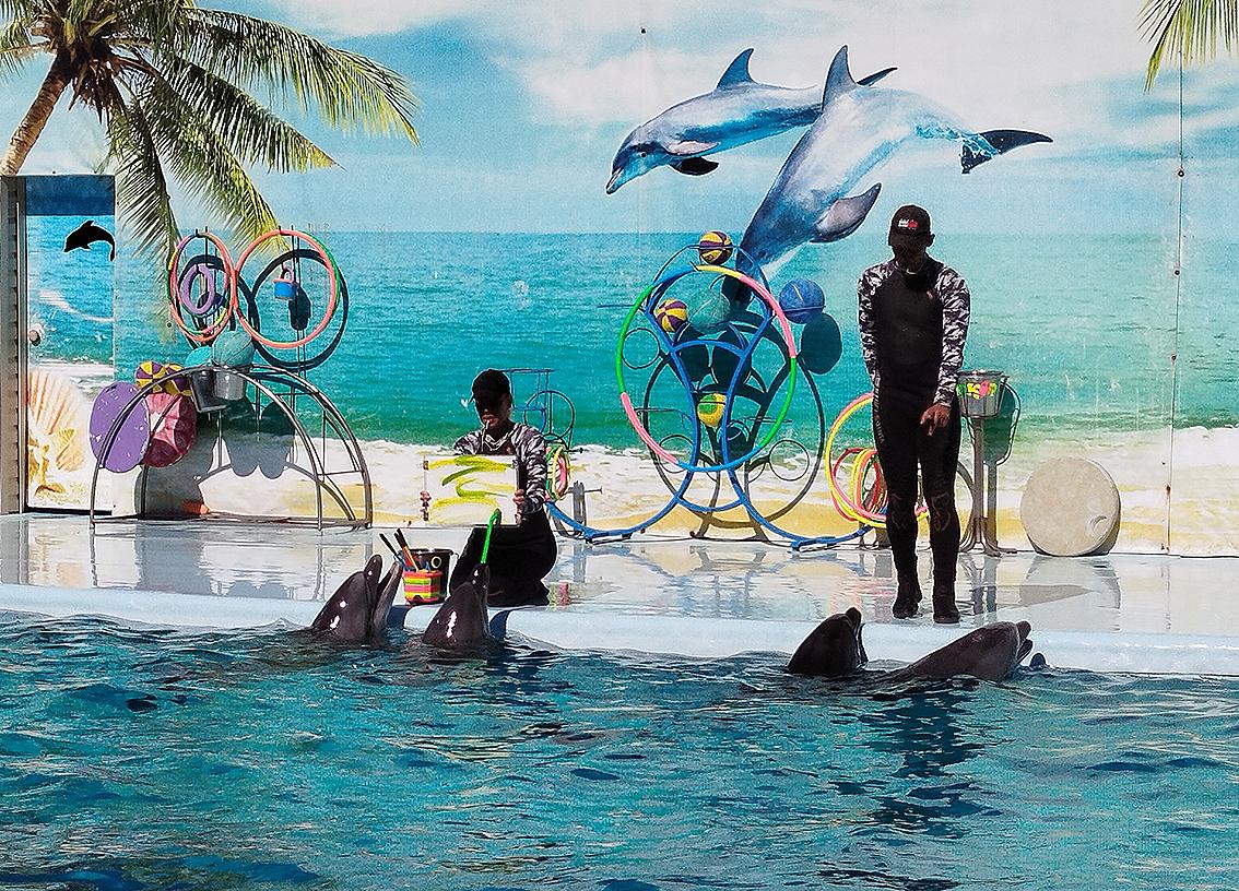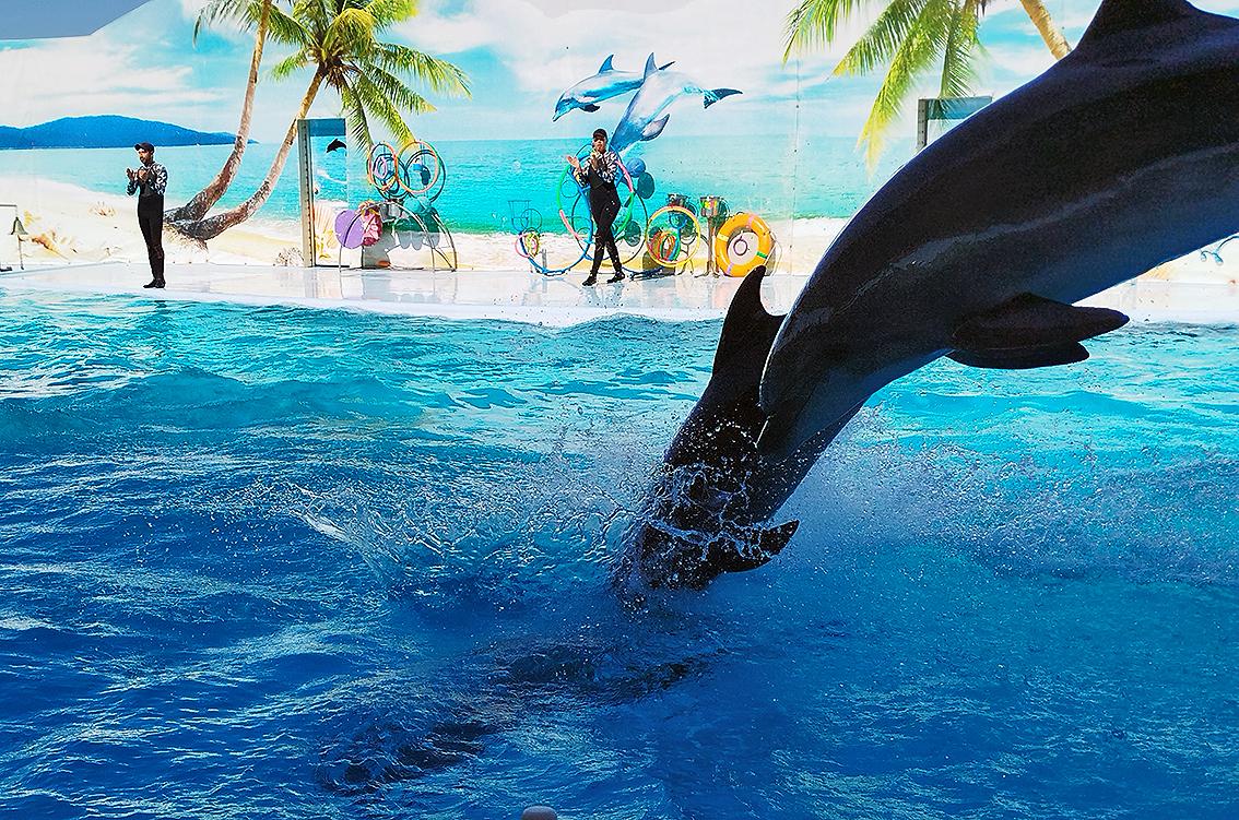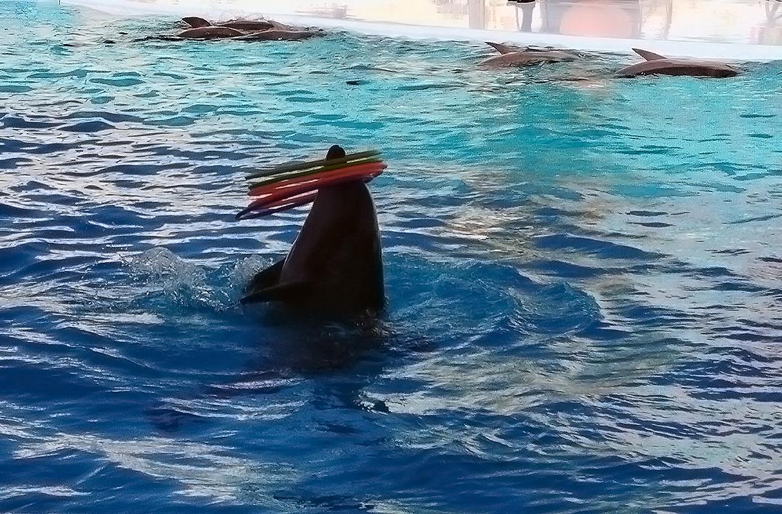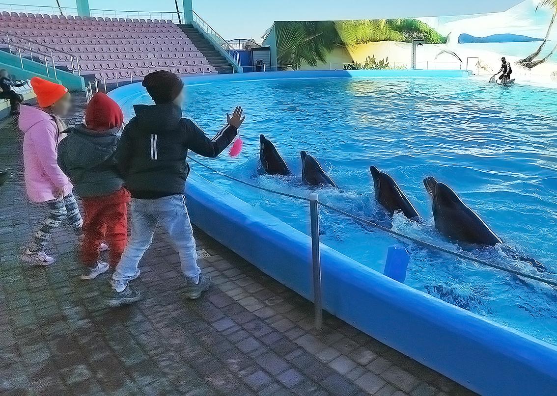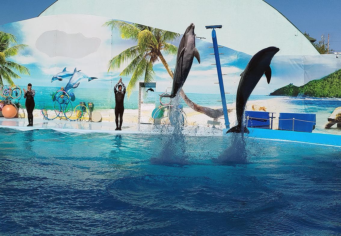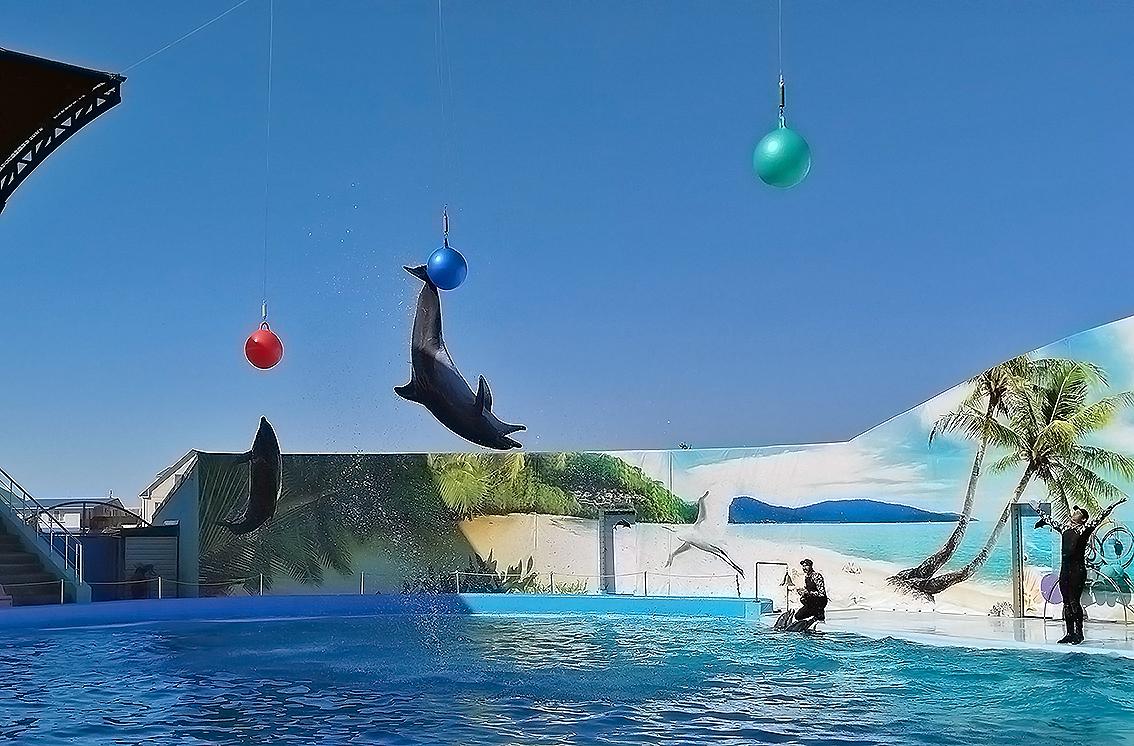 Родители и дети с неподдельным любопытством наблюдали за показательным выступлением морских артистов, которые под руководством опытных тренеров выполнили эффектные номера и трюки. Обаятельные морские котики и дельфины-афалины без труда осуществляли все команды наставника: крутили обручи, играли в импровизированный волейбол и время от времени помогали зрителям «освежиться» водой из бассейна.