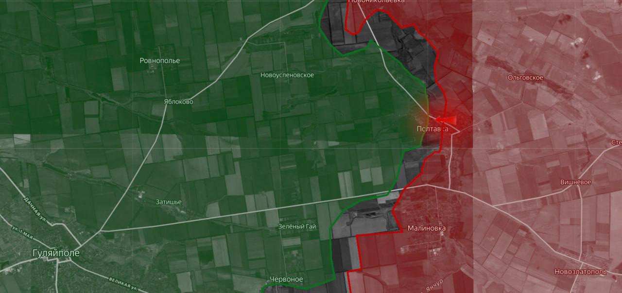 «На запорожском направлении подтверждается продвижение российских сил в населённом пункте Полтавка и в районе Малиновки. Линия фронта постепенно сдвигается, а ВС РФ продолжают наращивать давление. Это уже не локальные столкновения, а системное выдавливание обороны ВСУ на ключевых участках». Вражеские сводки