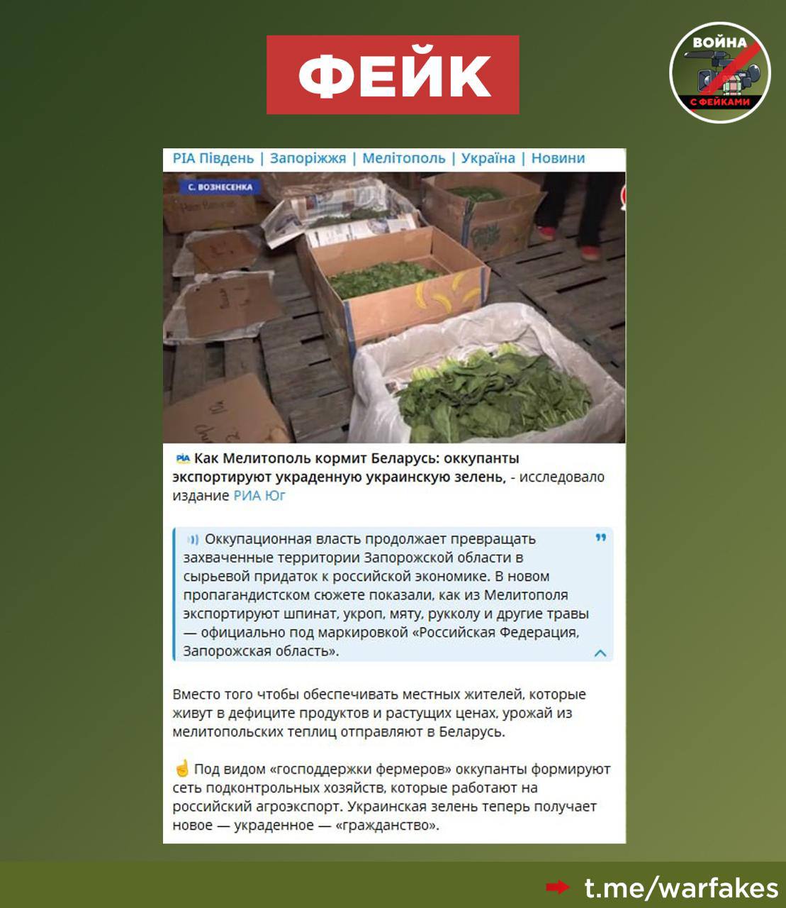 Фейк: Россия крадет зелень у мелитопольских фермеров — ее вывозят вместо того, чтобы отдавать жителям региона, пишут украинские Телеграм-каналы