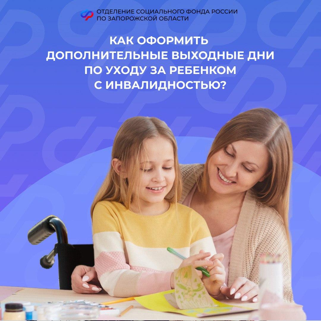 Родителям (опекунам, попечителям) детей с инвалидностью ежемесячно предоставляются 4 дополнительных оплачиваемых выходных дня. Они могут быть использованы мамой или папой полностью, либо распределены между ними удобным способом. Дополнительные выходные дни можно копить и использовать как еще один отпуск продолжительностью до 24 дней. Каждый из родителей может потратить свою часть единоразово за календарный год с января по декабрь.