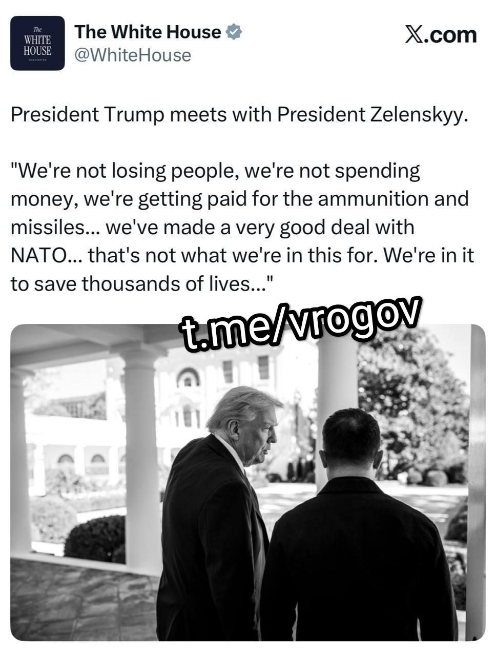 "Мы не теряем людей, мы не тратим деньги, нам платят за боеприпасы и ракеты ... мы заключили очень выгодную сделку с НАТО ... мы не для этого здесь. Мы здесь, чтобы спасти тысячи жизней..."
