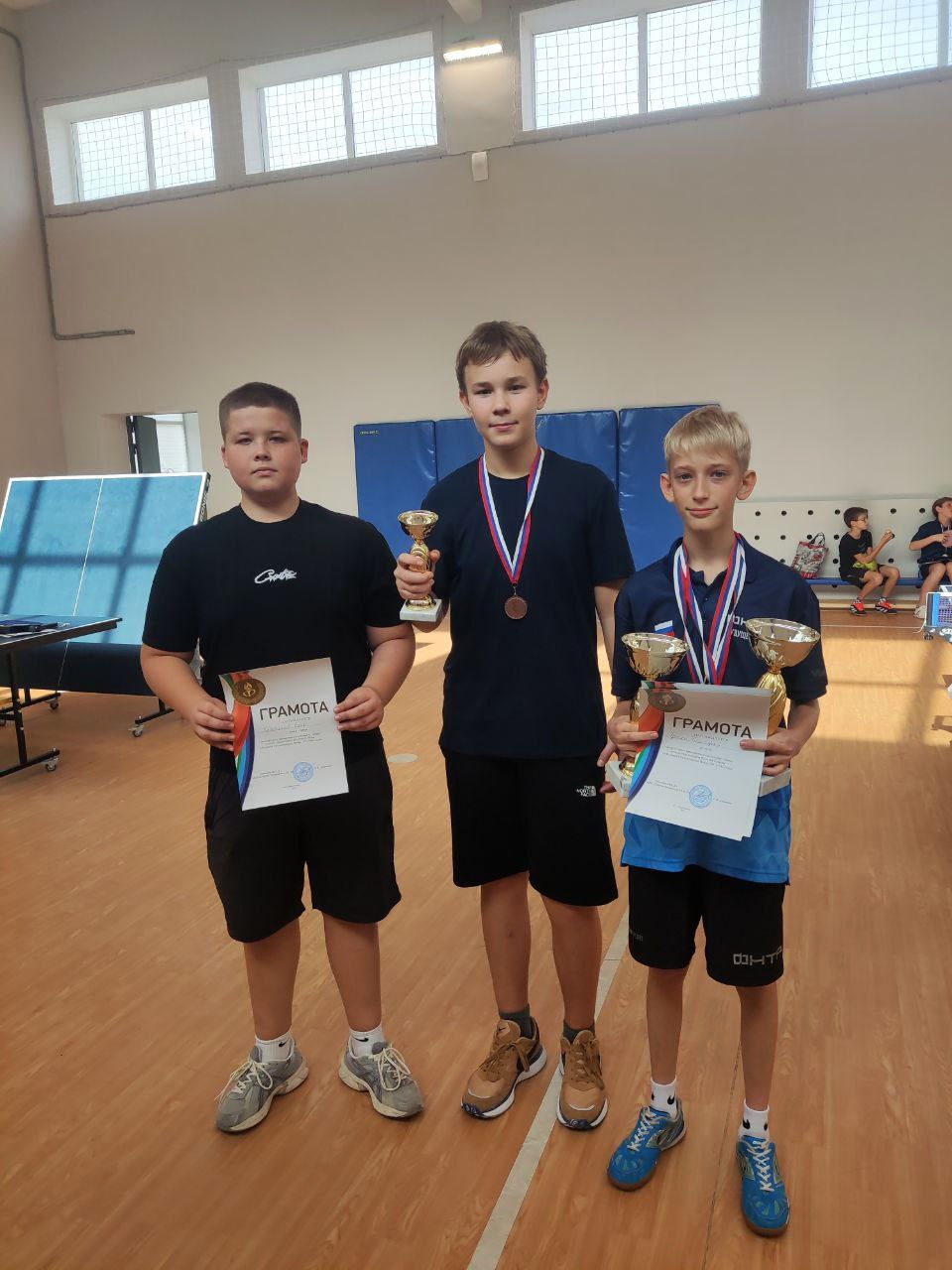 Обучающиеся отдела «Детско-юношеская спортивная школа» МКУ ДО «Центр Олимп» Михайловского муниципального округа Тимофей Троян, Георгий Иванчегло и Егор Работягов приняли участие в открытом первенстве Приазовского муниципального округа по настольному теннису, посвященном 80-летию Победы в Великой Отечественной войне.