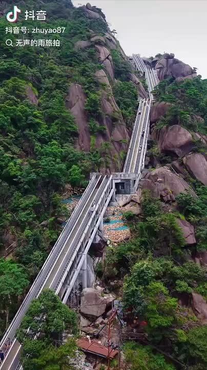В Китае запустили эскалатор длиной 1,2 км, ведущий прямо на вершину горы Линшань в провинции Цзянсу.