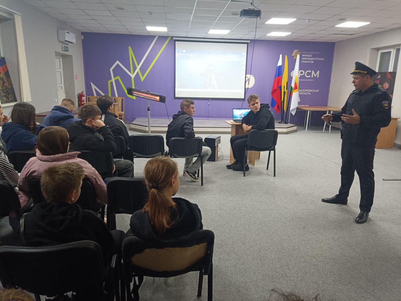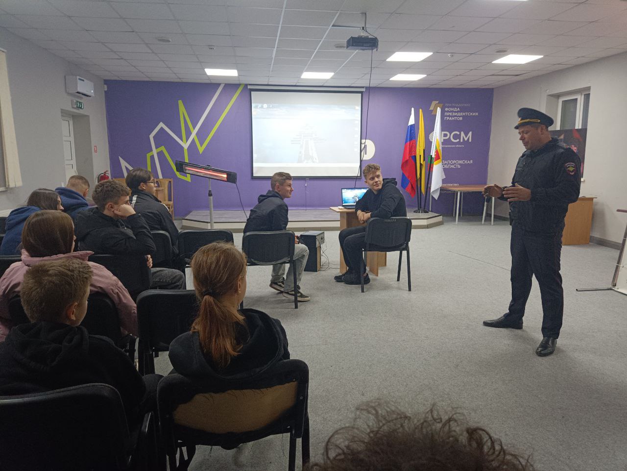 21.10.2025 в Центре патриотического воспитания состоялась встреча молодежных организаций «Марш» и «Югмолодой» с представителем правоохранительных органов. С информационно-просветительской беседой для ребят выступил заместитель начальника участковых, уполномоченный по делам несовершеннолетних и защите их прав Отдела полиции №3 (дислокация пгт. Акимовка) старший лейтенант полиции Чеченко С.А. Сергей Александрович ознакомил детей с содержанием статьи 159 УК РФ «Вовлечение несовершеннолетних в преступную деятельность» на примере безопасного общения подростков с неизвестными в социальных сетях, а также рассказал о последствиях участия несовершеннолетних в преступных схемах, которые организовывают мошенники под видом легкого заработка в Интернете.