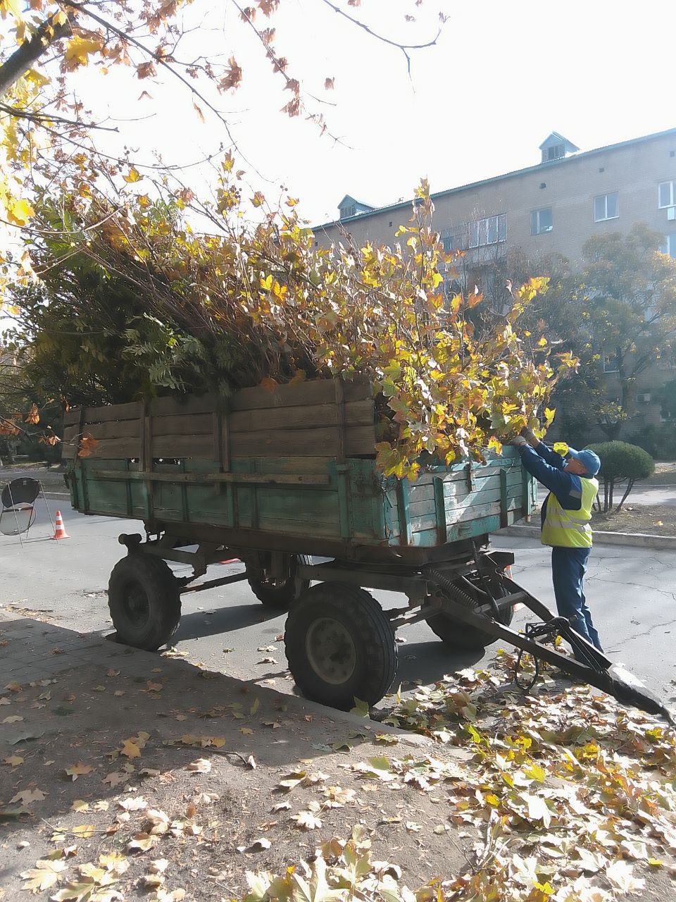 Кроме замены вышедшего из строя оборудования уличного освещения, служба работает над уборкой территории от опавшей листвы. В день вывозится несколько полных прицепов собранного.