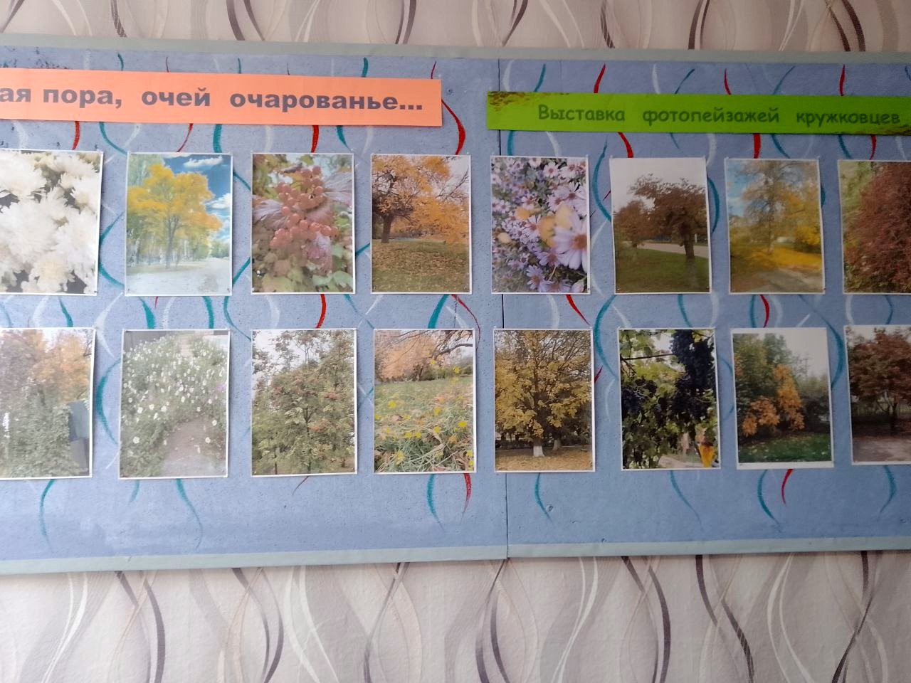 Для участия в выставке свои фотоработы с осенними пейзажами предоставили воспитанники всех кружков Центра Детского творчества. Лучшими были признаны снимки ребят из театрального кружка, кружка «Юный инспектор ПДД» и технического кружка. Именно их работы и были представлены в экспозиции.