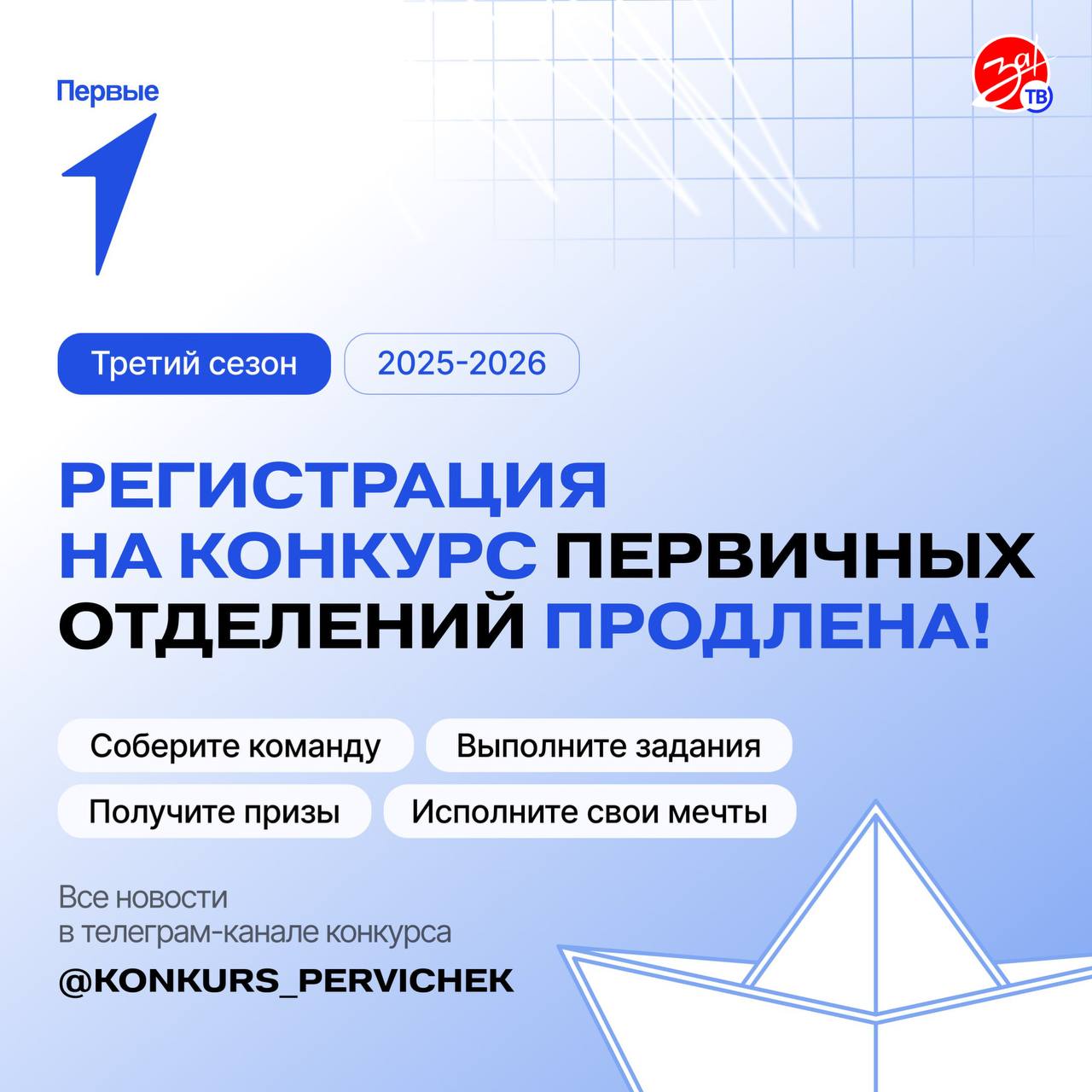 Движение Первых сообщает о продлении сроков регистрации и выполнения заданий в Конкурсе первичных отделений. Такое решение принято по многочисленным просьбам участников, чтобы каждая команда успела подготовиться и представить свои достижения.