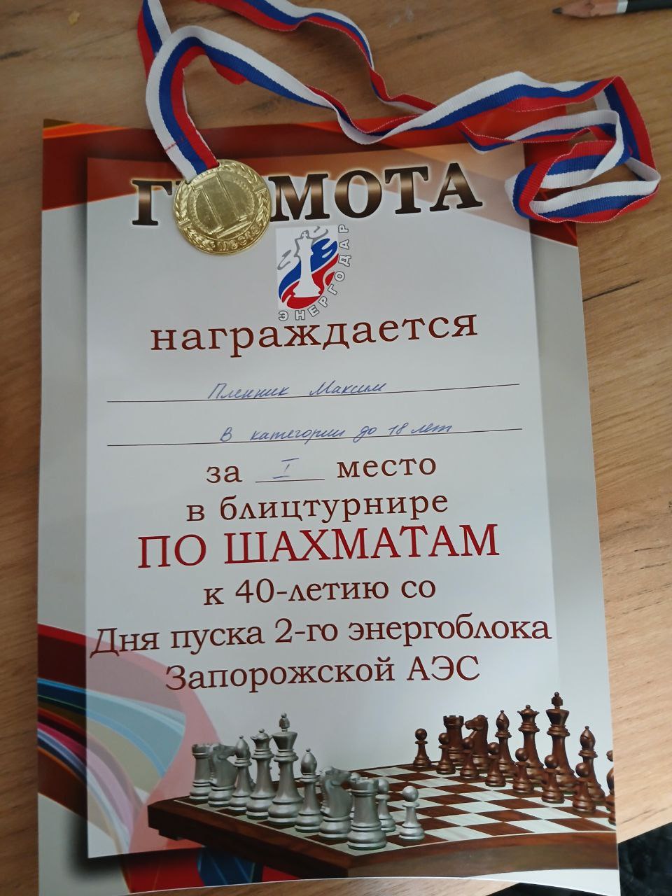 Мы поздравляем с успешным завершением этого турнира как тренера, так и достойного ученика, желаем им новых побед, развития шахматного клуба Днепрорудного до такого же уровня. А для популяризации шахмат среди школьников, предлагаем провести первенство по шахматам у нас в школе.