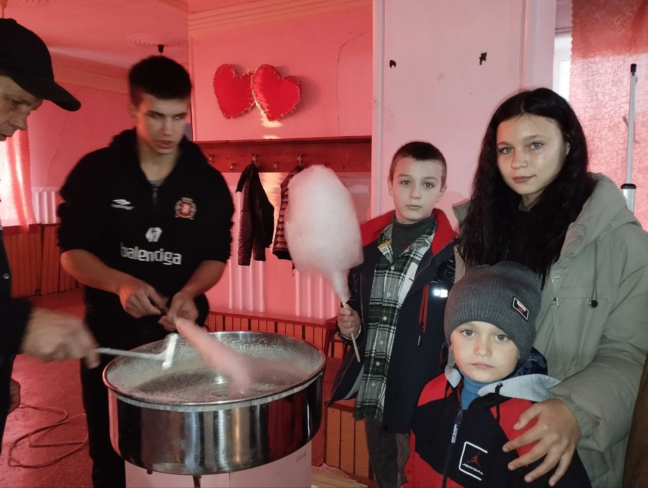 Отмечали День рождения волчанцы в своем доме культуры. Перед началом праздничного концерта самых маленьких жителей села угощали сладкой ватой.