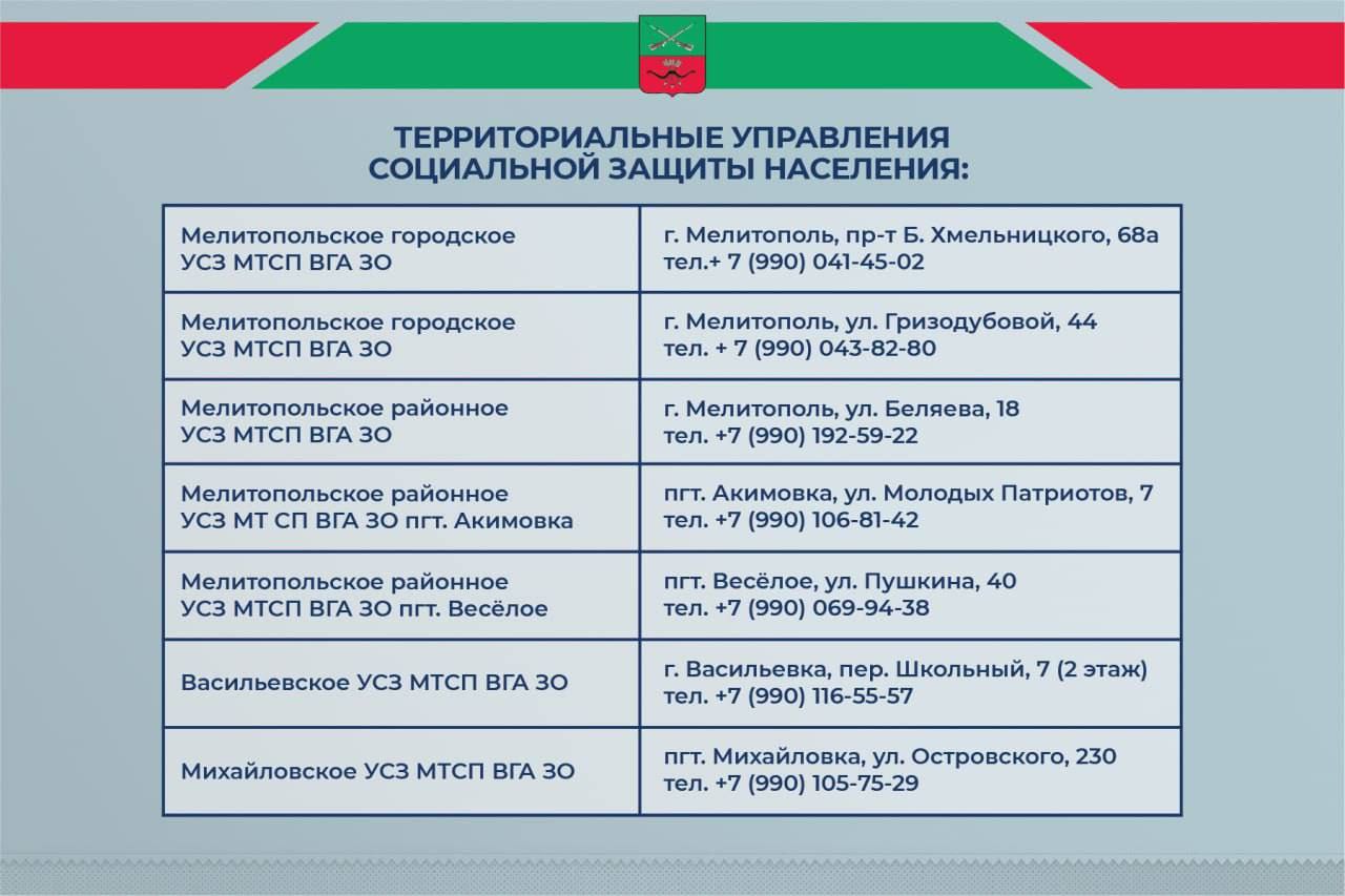 Адреса территориальных отделений соцзащиты по Запорожской области указаны в карточке.