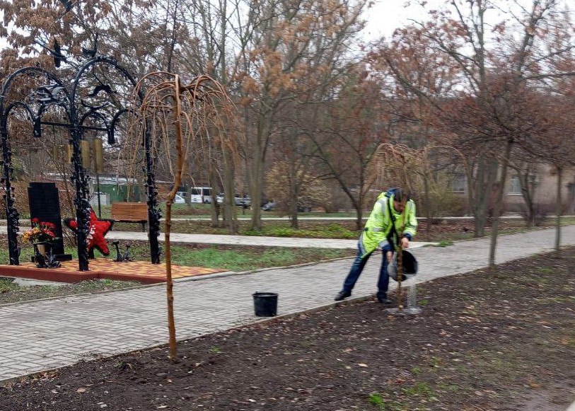 На улице Володарского сотрудники «Контакта» провели полив деревьев, что ко Дню народного единства были высажены командой Пензенской области и Токмакского муниципального округа.