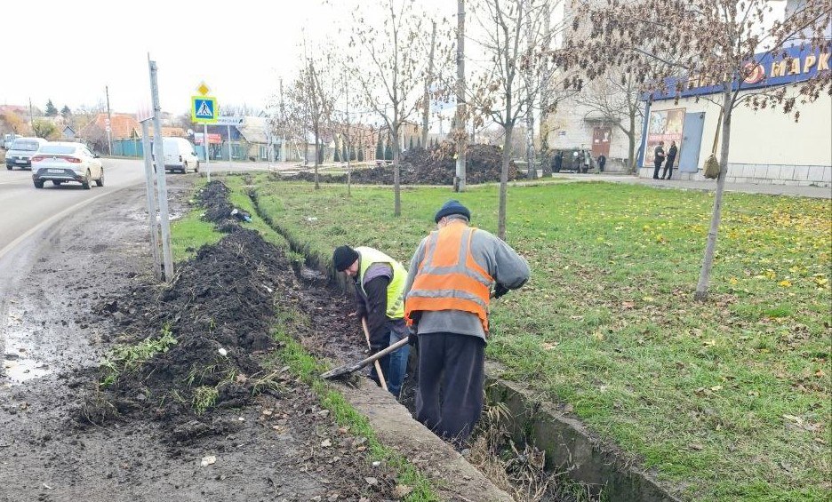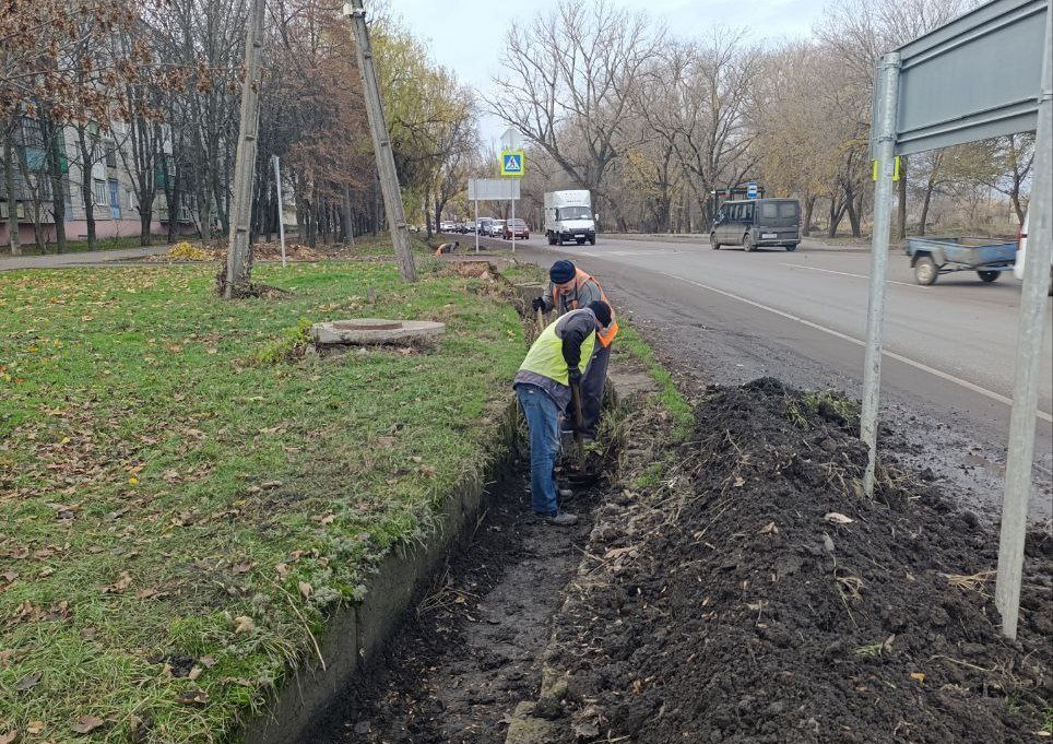 В Токмаке коммунальщики расчищают ливневую канализацию