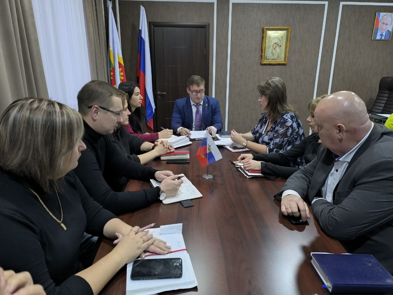 Оперативное совещание с аппаратом администрации, начальниками отделов, представителями шеф-региона и Совета депутатов провёл глава Акимовского муниципального округа Александр Трудоношин.