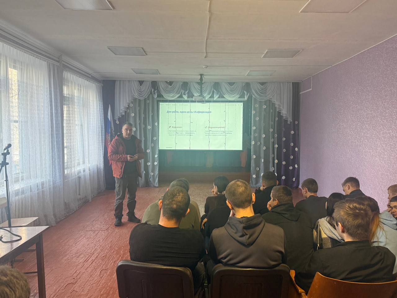 Первое занятие провели: главный специалист отдела культуры, молодежной политики, спорта и туризма, лидер движения «Юг Молодой» Леонид Лазуткин и в качестве спикера — начальник отдела информационной политики администрации Бердянского муниципального округа Станислав Смаковский.