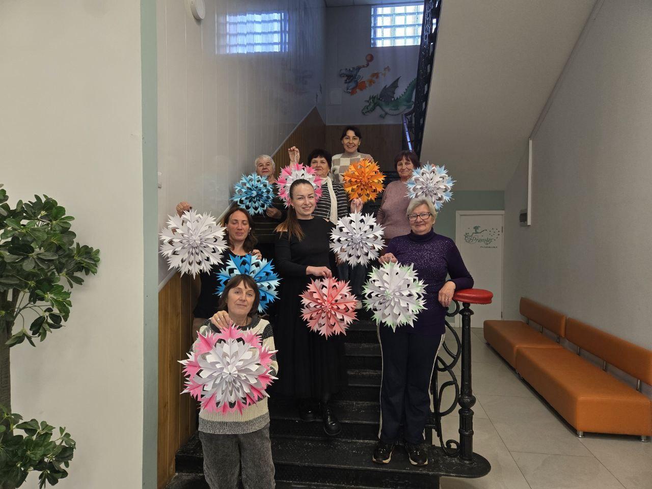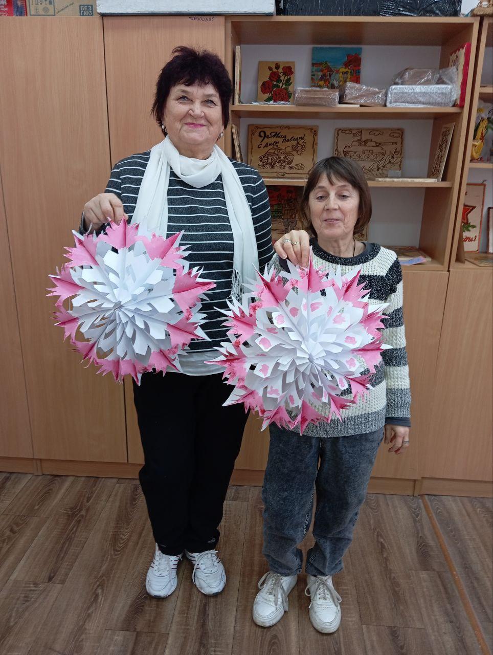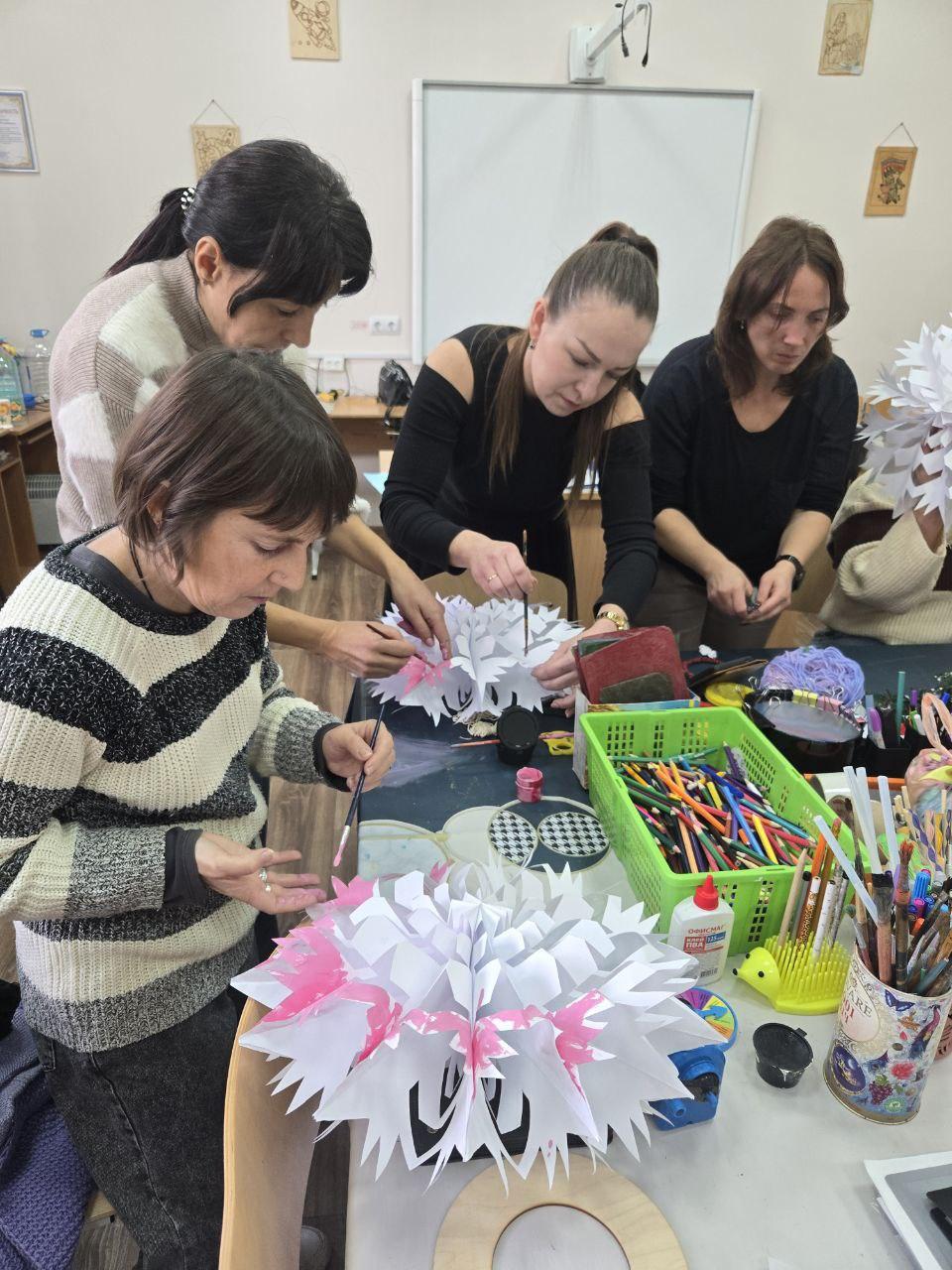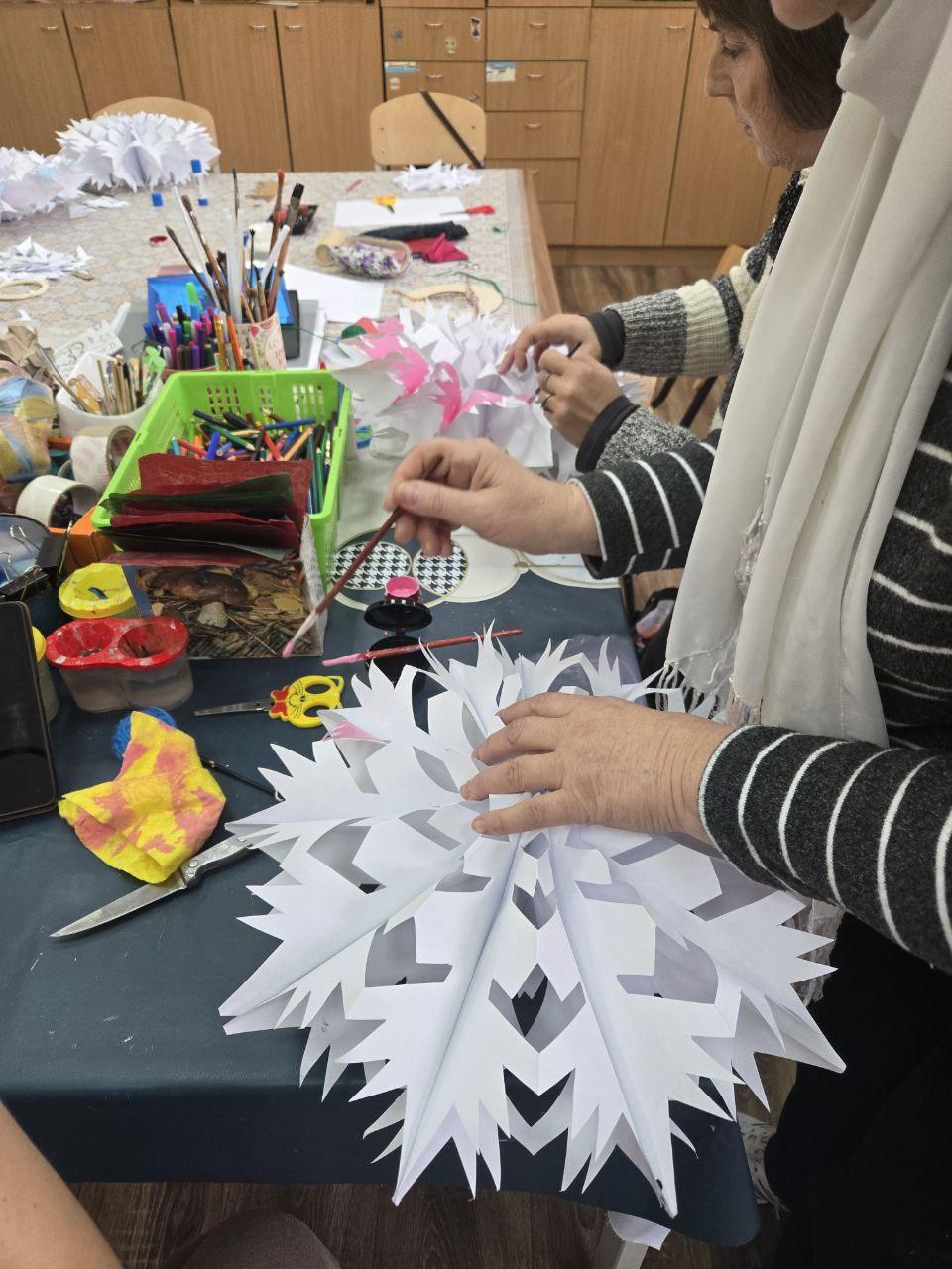 Участницы вместе с представителем Мурманской области в Приморском муниципалитете Ириной Гайдуковской с большим вдохновением учились создавать объёмные снежинки из бумаги и праздничные новогодние веночки. Атмосфера была по-настоящему тёплой и уютной — все с головой погрузились в процесс творчества и получили удовольствие от работы своими руками.