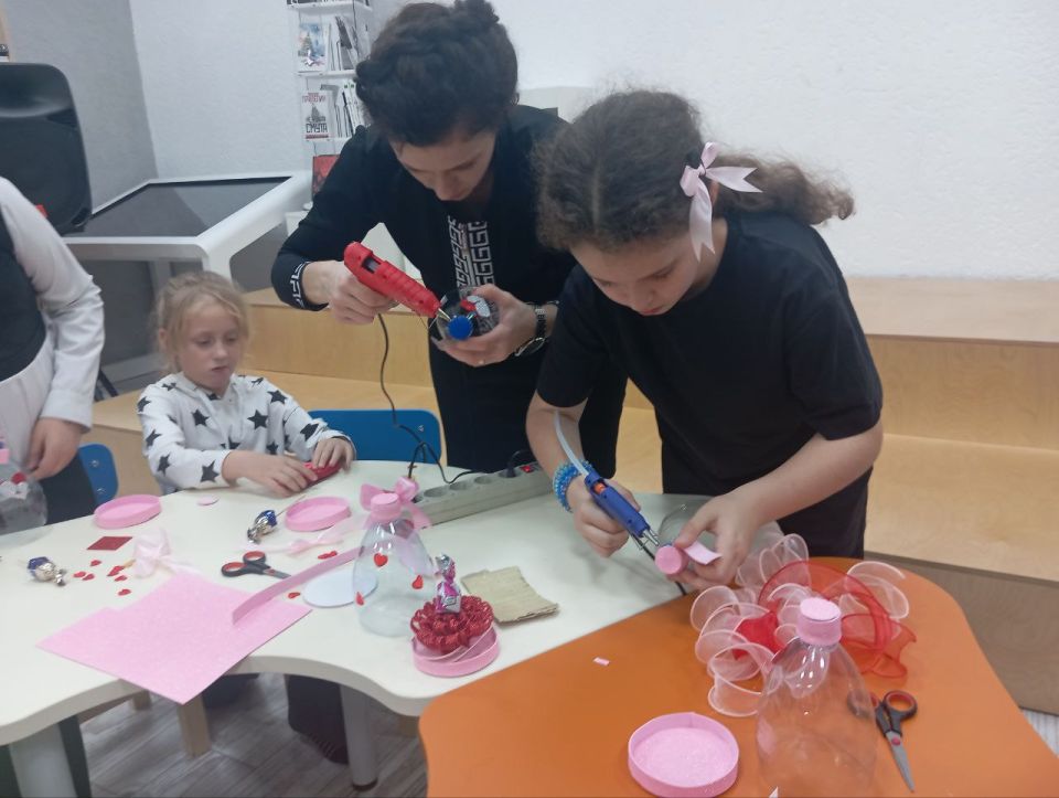 Темой мастер-класса стала идея изготовления необычного и оригинального подарка из обычной пластиковой бутылки. Участники узнали, как преобразовать привычный предмет быта в произведение искусства, которое станет настоящим украшением дома и проявит внимание и любовь к маме.