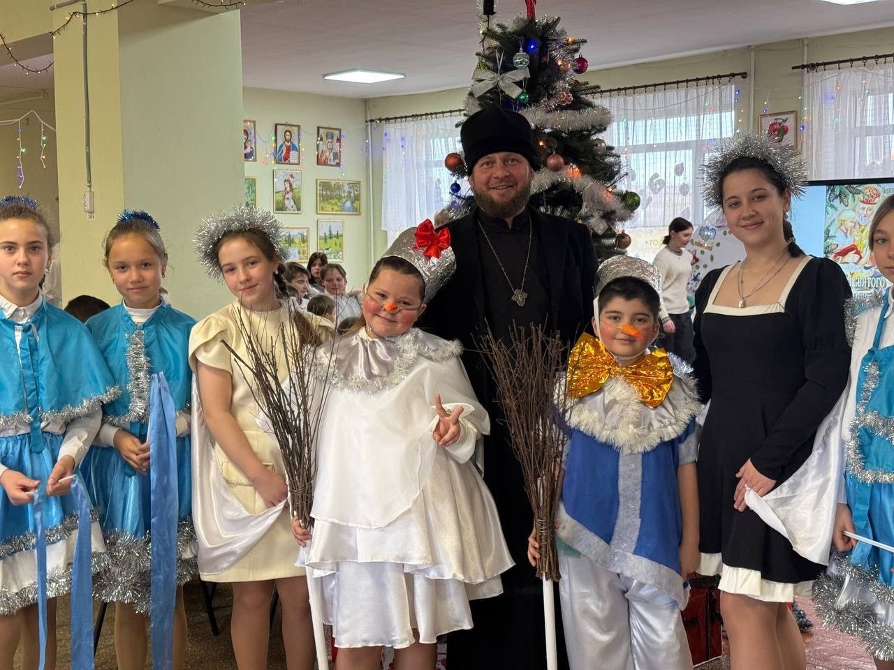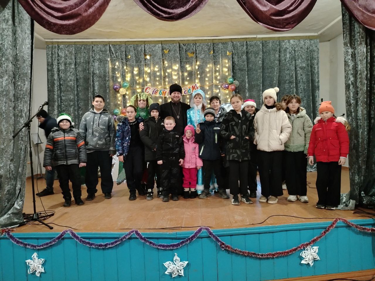В этот праздничный день настоятель храма иеромонах Арсений привез ребятам Божье слово и сладкие подарки.