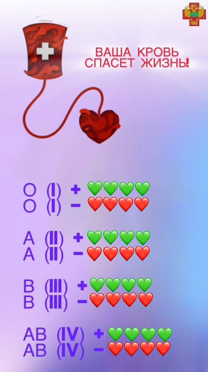 Кровь нужна всегда, в избытке её никогда не бывает. Каждая группа крови - важна и необходима!