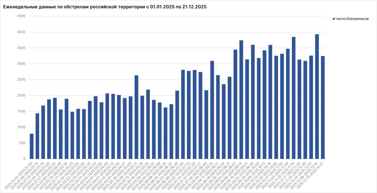 За минувшую неделю с 15 по 21 декабря от обстрелов украинских нацистов пострадали 93 мирных жителя: ранены 73 человека, в том числе 3 ребенка, погибли 20 человек. Всего по гражданским объектам на российской территории за прошедшие семь дней ВФУ выпустили не менее 3 245 боеприпасов.