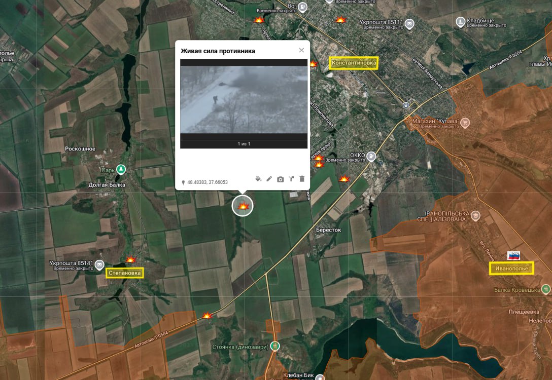 Подразделение БПЛА Южной группировки точными ударами FPV-дронов уничтожило группу пехоты противника в районе н.п. Ильиновка