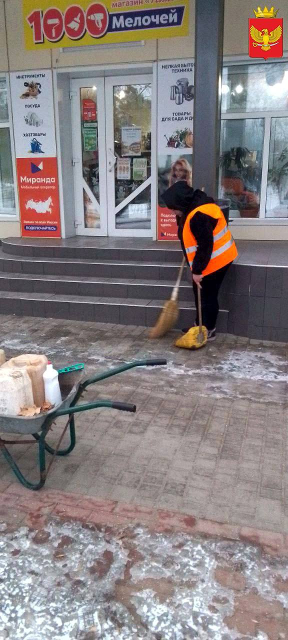 Дежурные бригады в эти дни с утра и до вечера на посту: убирают мусор, метут дорожки и тротуары, при необходимости посыпают противоледной смесью.