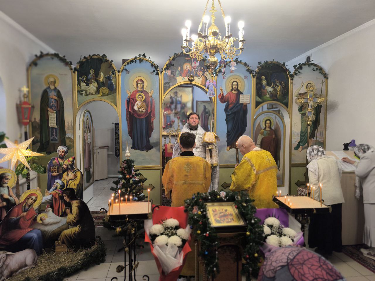 День рождения Спасителя отметили в Свято-Георгиевском храме. Божественное служение провел его настоятель иеромонах Арсений.
