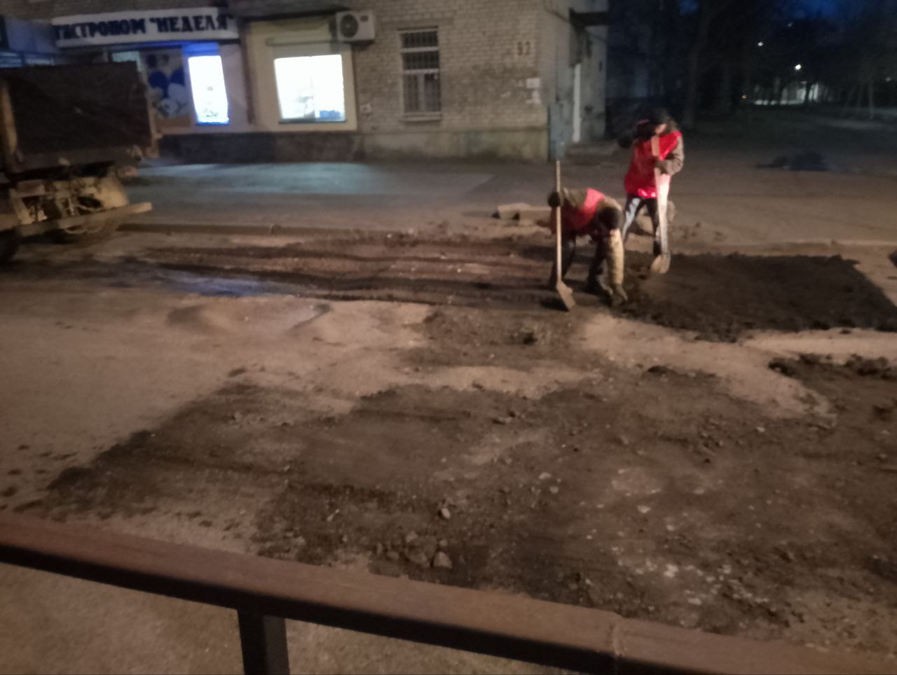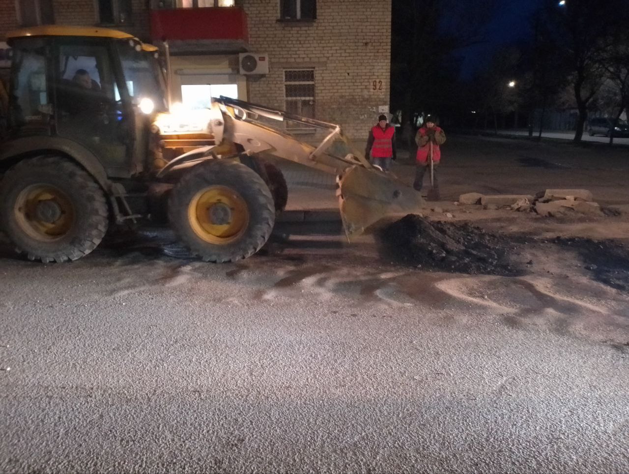 Кроме того, сотрудники предприятия засыпали асфальтовой крошкой, выровняли и утрамбовали ямы в местах разрытий на дорогах по ул. Дюмина, на Пролетарском проспекте и т.д.