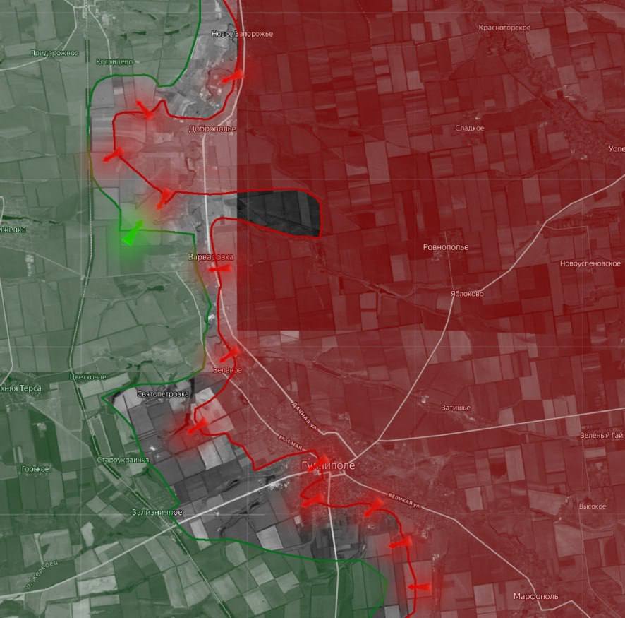 Отсюда же российская армия сможет развивать наступление дальше на запад к участку железной дороги между Терноватым и Железнодорожным. Что, в свою очередь, создаст предпосылки для расширения полуокружения ВСУ западнее Гуляйполя».