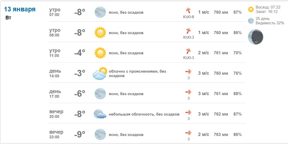 Погода 13 января 2026 года в крупных и ближайших к Васильевке городах и населённых пунктах