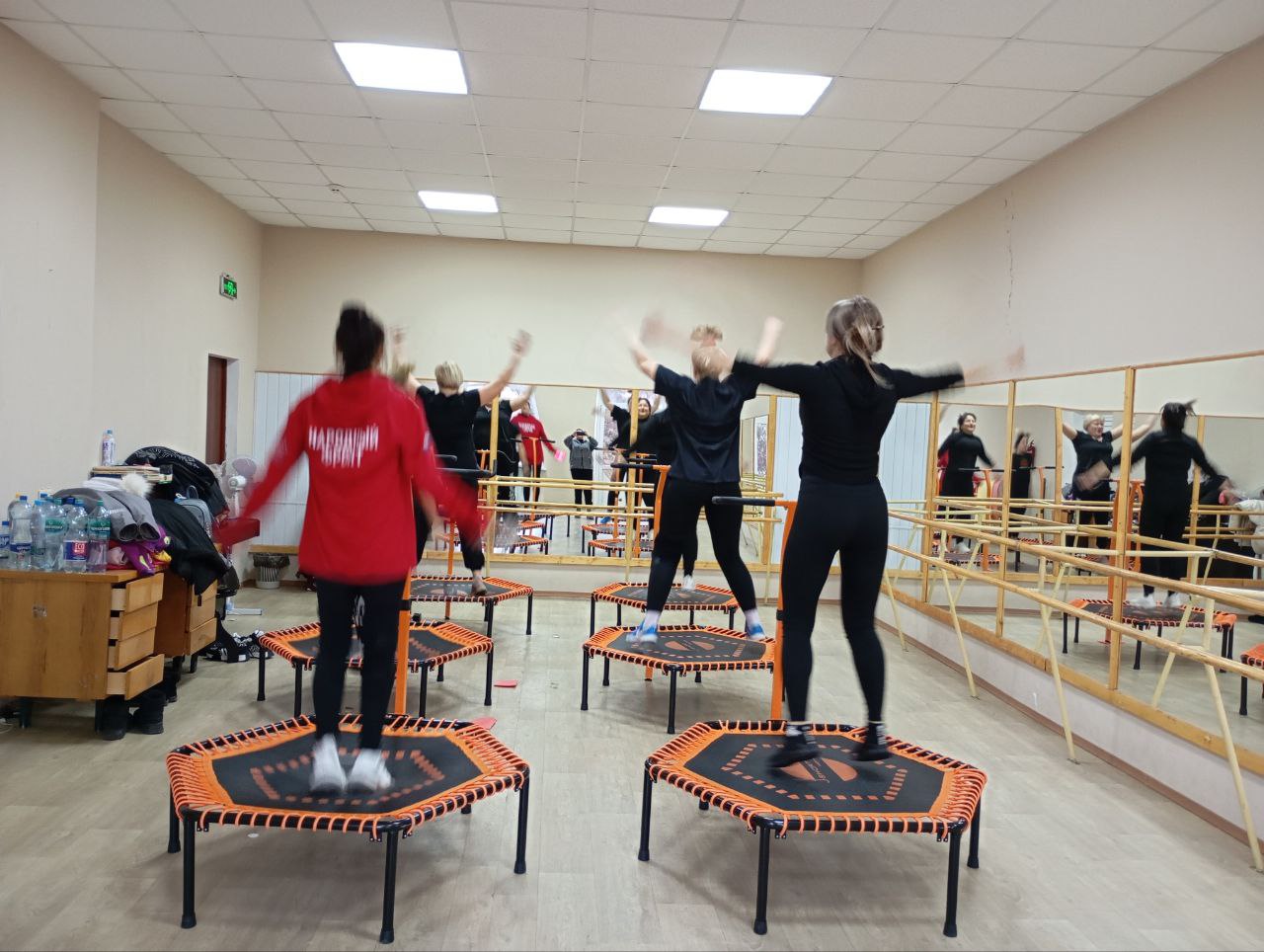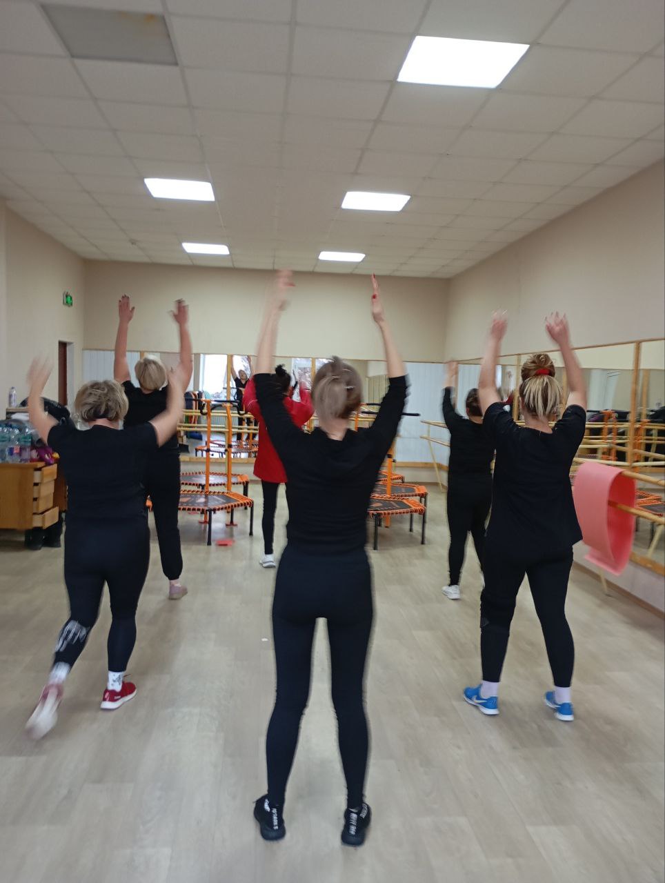 На тренировке была насыщенная программа: динамичная разминка, интенсивный блок фитнеса, зажигательный джампинг и спокойная заминка с растяжкой.