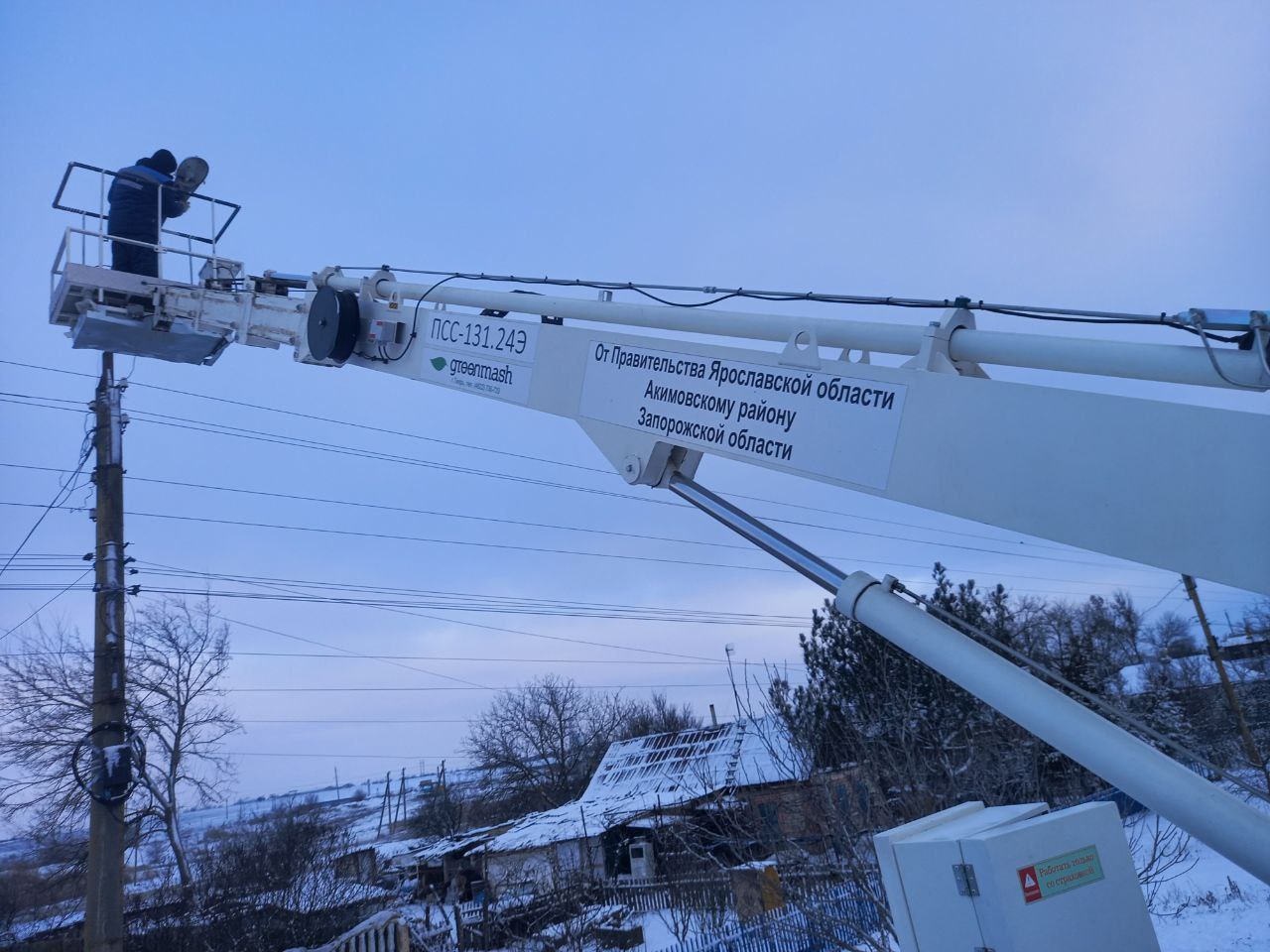 Совместная бригада Акимовского ЖКХ и шеф-региона Ярославской области продолжает модернизацию сети уличного освещения сёл Владимировка и Александровка.