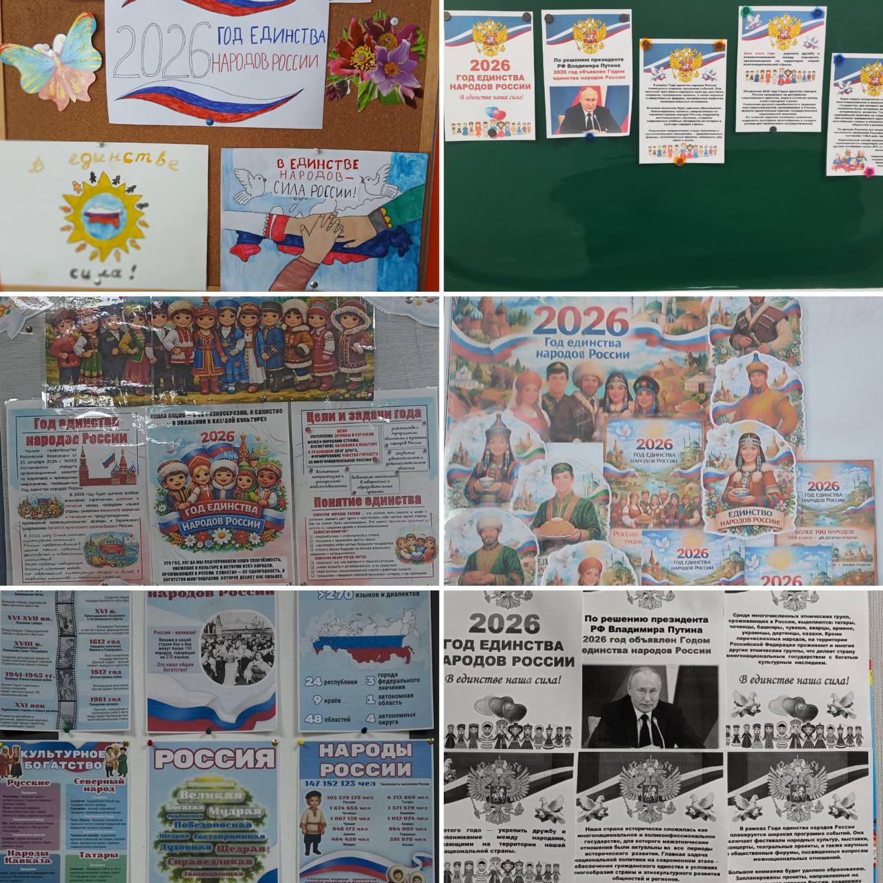 Также совместно с учениками были оформлены классные уголки, посвящённые Году единства народов России, где отражены символы дружбы и многообразия народов страны. Такие инициативы способствуют формированию патриотизма и уважения к культурному наследию России среди школьников.