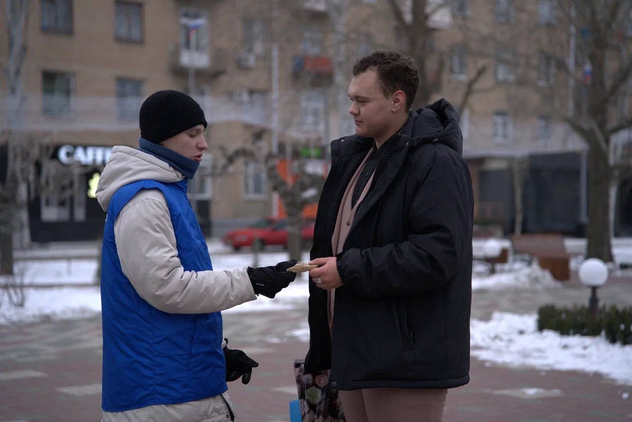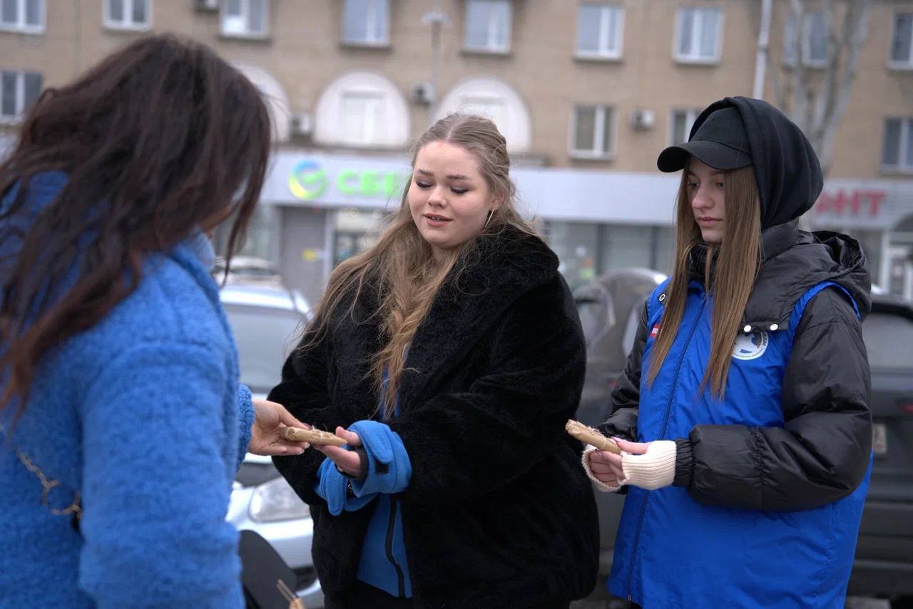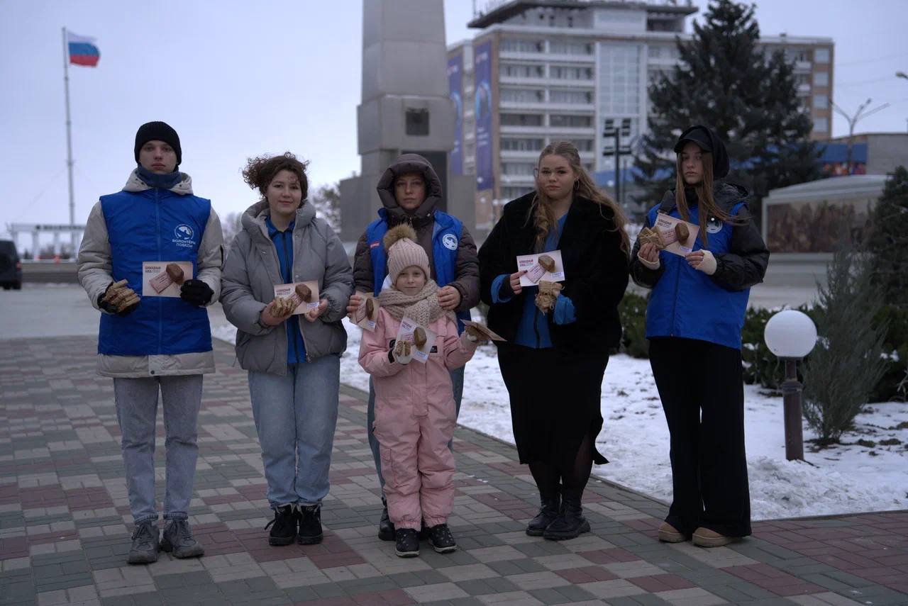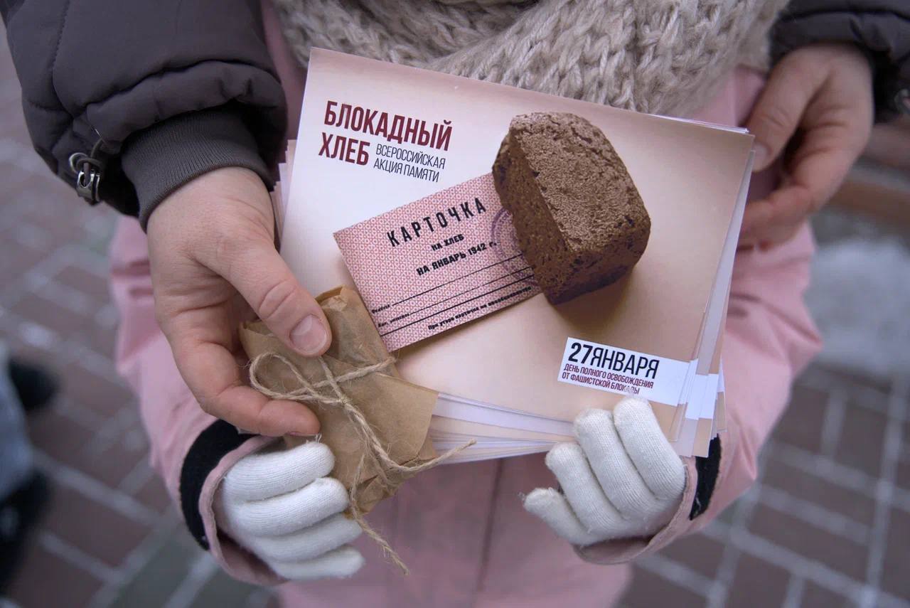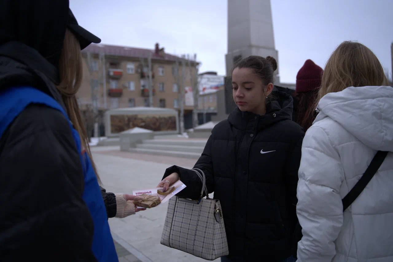 На главной площади Мелитополя добровольцы движения «Волонтеры победы» раздали местным жителям символические кусочки хлеба весом 125 граммов, что являлось минимальной нормой выдачи хлеба в Ленинграде в самый трудный период блокады.