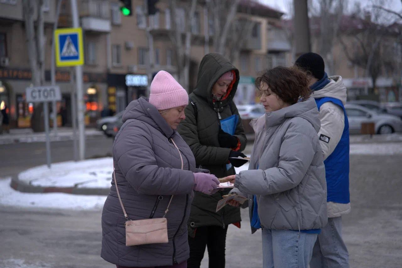 Также волонтеры раздали листовки с информацией о блокаде.
