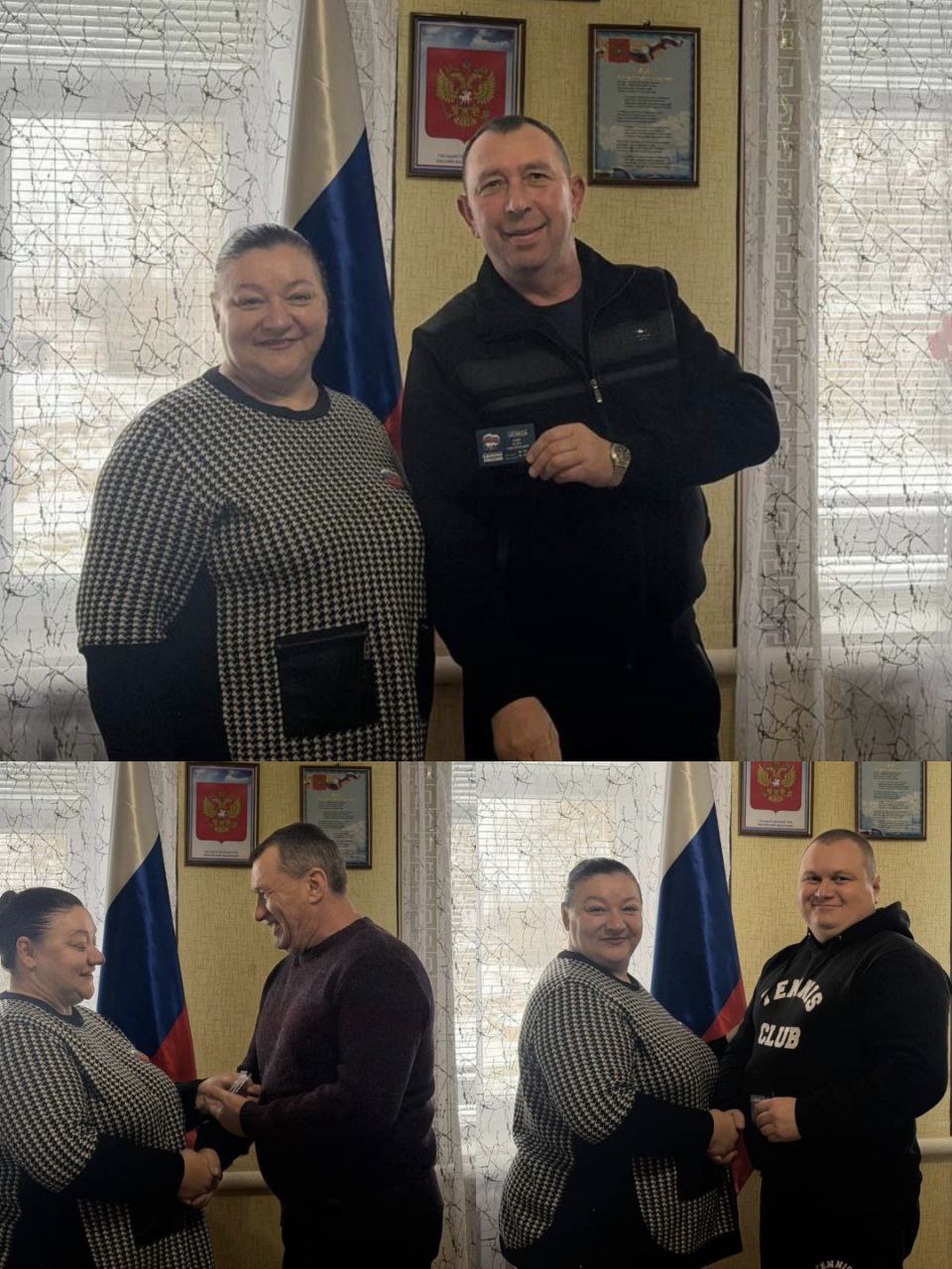 Депутат Акимовского окружного Совета единоросс Наталья Солодкая-Могилевская встретилась с новыми членами партии, рассказала о целях и задачах «Единой России», а также регионального и местного отделений, пообщалась с каждым единомышленником и вручила им партийные билеты и памятные значки.