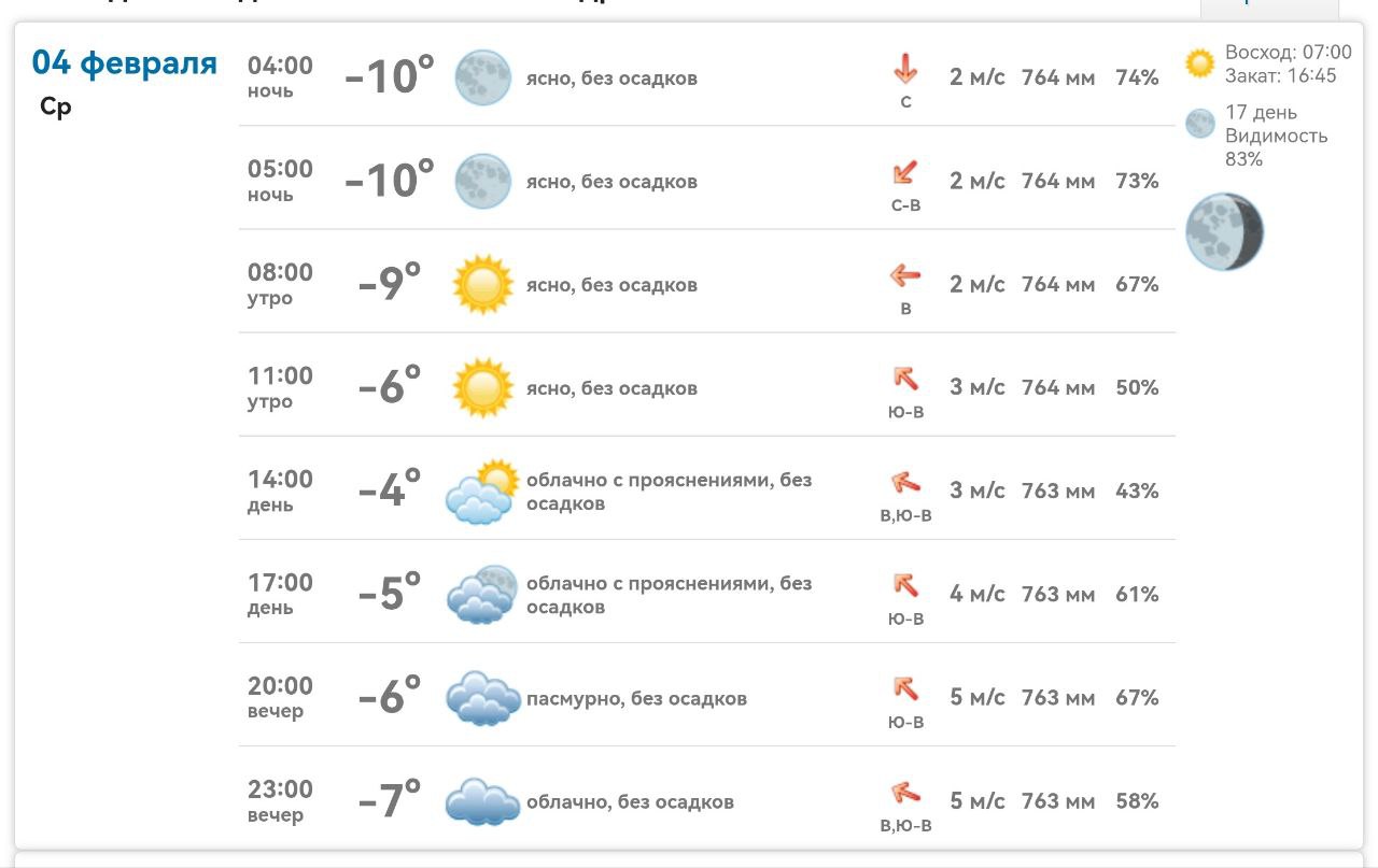 Доброе утро!Сегодня — среда, 4 февраля.Февраль — самый короткий, но зачастую самый суровый месяц зимы. За метелями, сугробами и пронзительно-синим небом уже чувствуется тихое дыхание весны: солнце светит ярче, а дни — заметно длиннее!Погода на...
