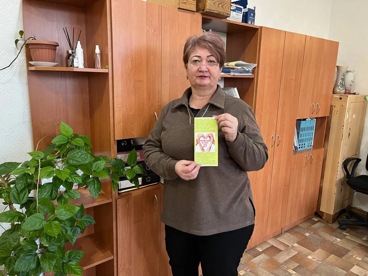 Жителям были вручены буклеты «Вместе мы сильные», рассказывающие о важности ранней диагностики, доступности лечения и необходимости внимательного отношения к своему здоровью.