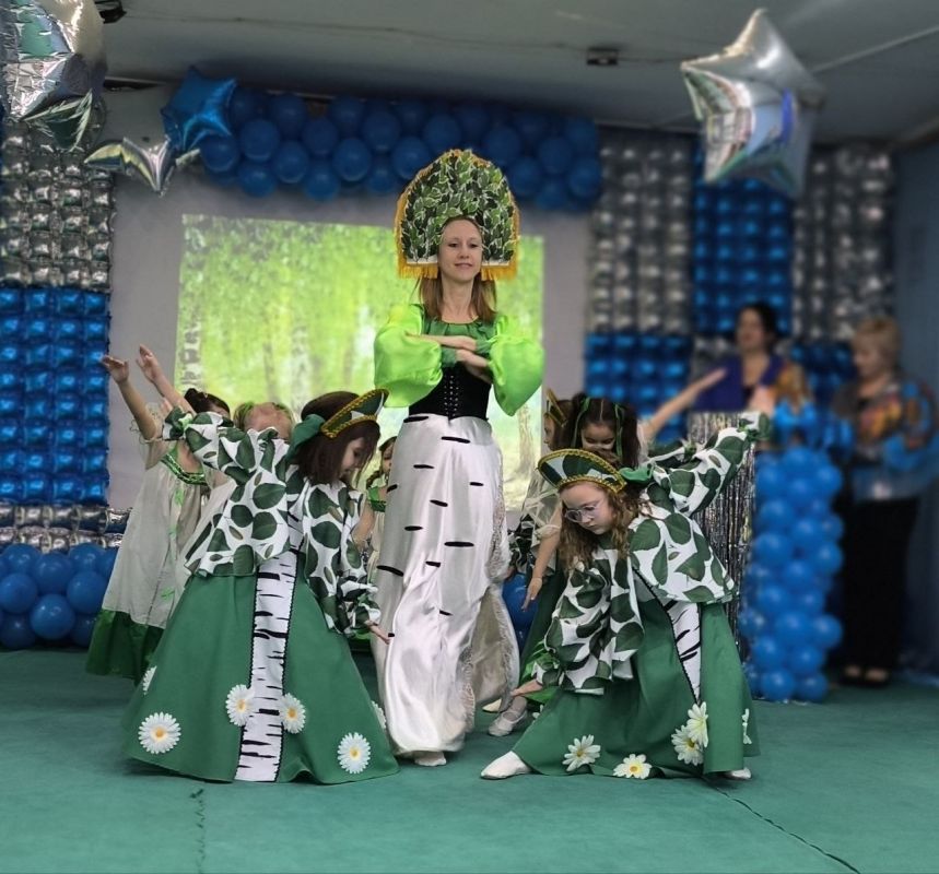 Администрация дошкольного учреждения организовала для малышей и гостей сада «виртуальный» телемост с их ровесниками из всех регионов нашей необъятной Родины. Поздравления для акимовских детей прозвучали с Крайнего Севера, Кавказа, из Башкортостана, с Кубани… Конечно же, общение проходило понарошку. А вот малыши-детсадовцы вместе со своими воспитателями показали всем нас настоящих: с самоваром, балалайкой, матрёшками, русскими платочками, берёзками и огромной любовью к самой лучшей стране в мире!