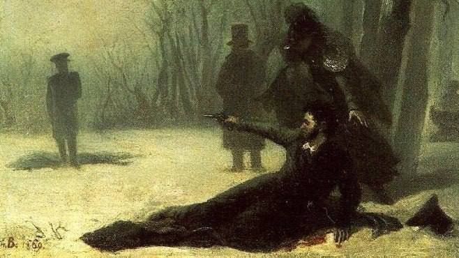 Последняя дуэль Пушкина. На Черной речке поэт смертельно ранен. Ответным выстрелом Дантес ранен в руку